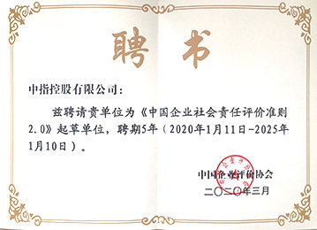 2020年中指控股被中国企业评价协会聘为“《中国企业社会责任评价准则2.0》起草单位”