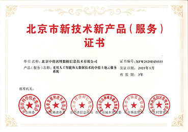2021年“中指土地云服务系统”获得“北京市新技术新产品(服务)”认证”