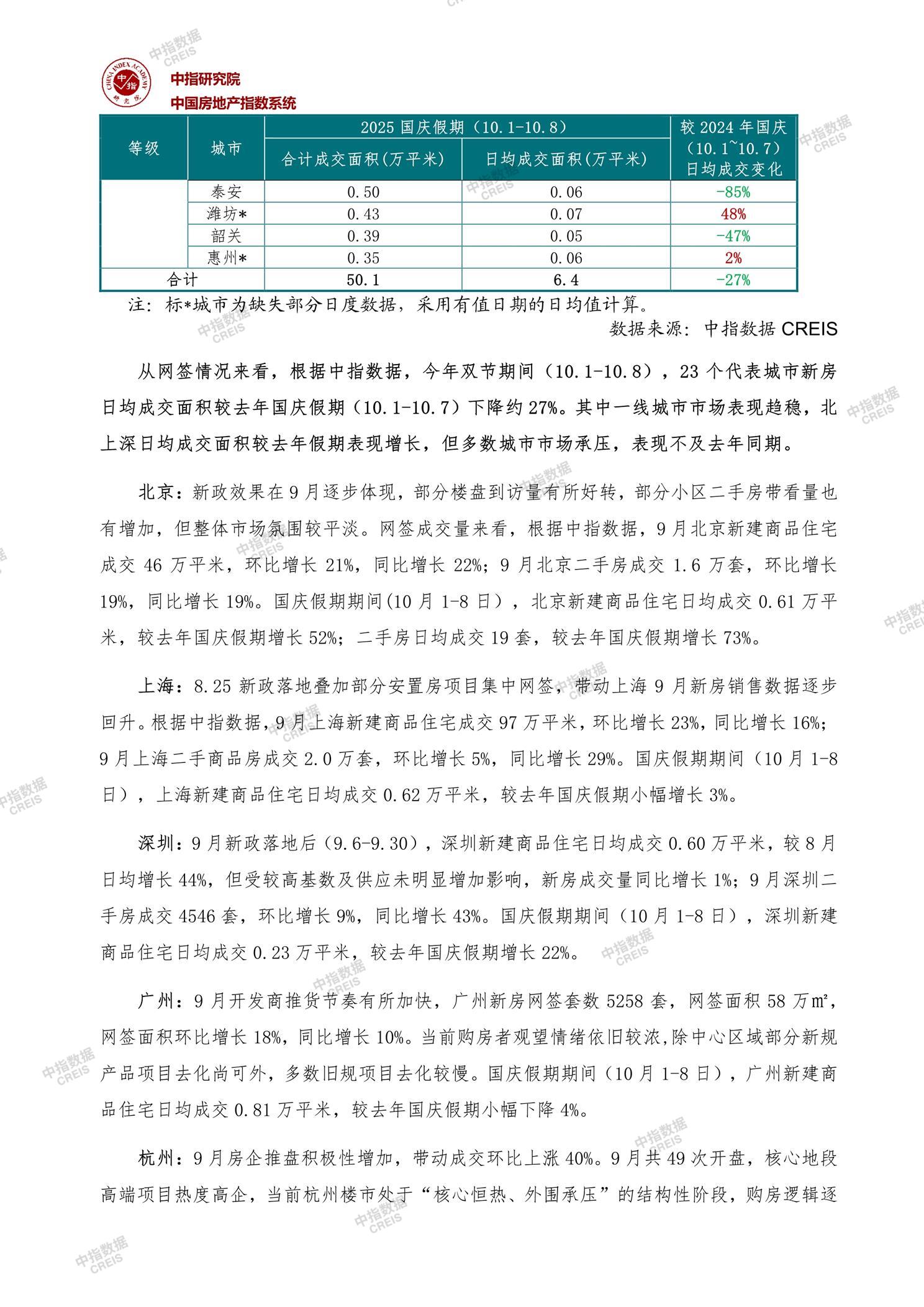 《中指丨10月楼市前瞻:国庆市场表现分化,“银十”前景如何》