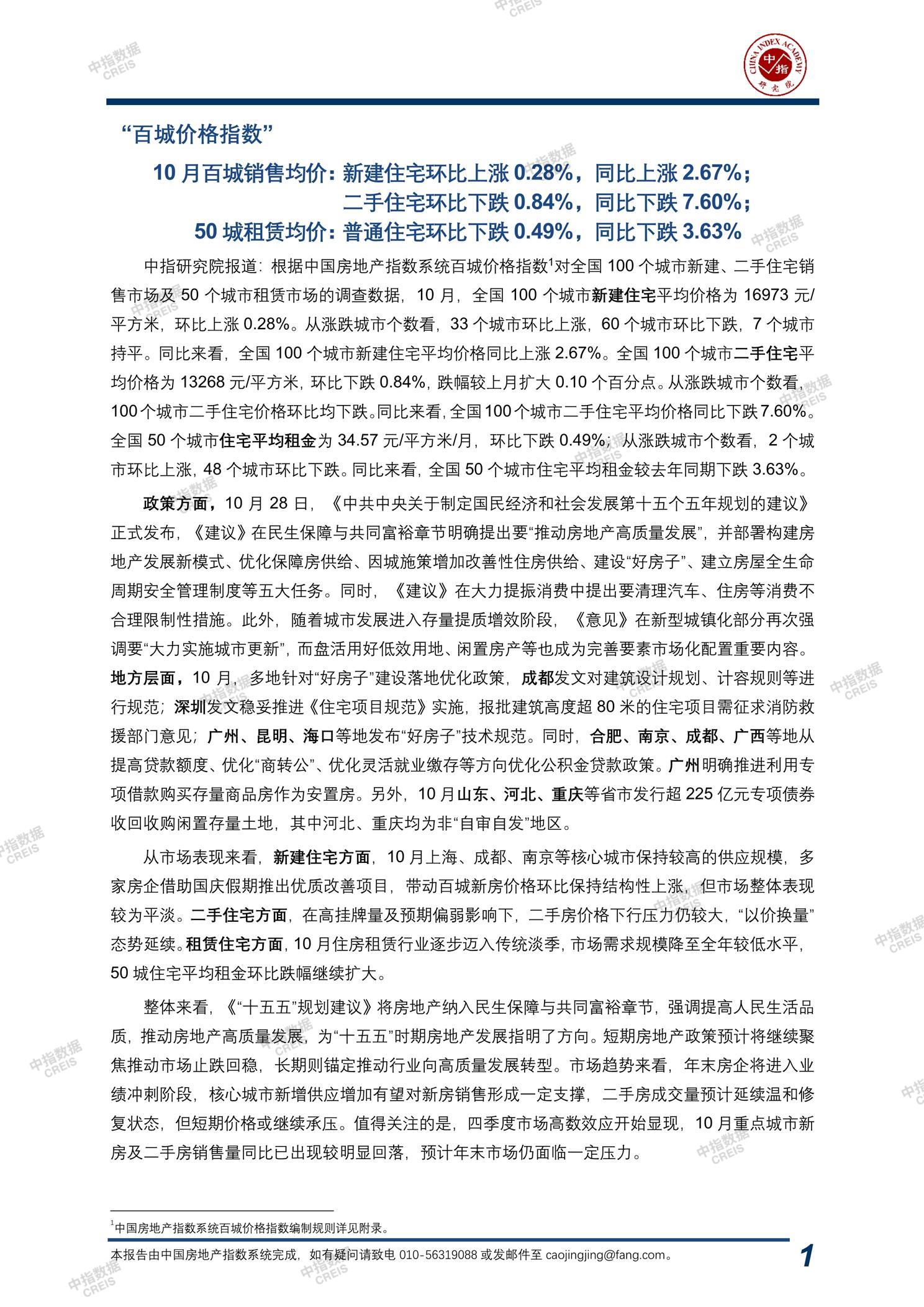 中国房地产指数系统百城价格指数报告(2025年10月)