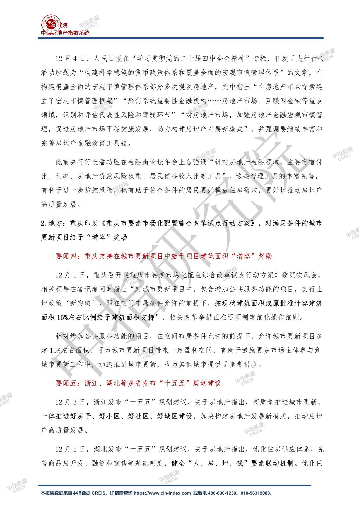 • [摘要] 中指·政策要闻丨李强总理再提稳楼市,释放积极信号(12.1-12.7)