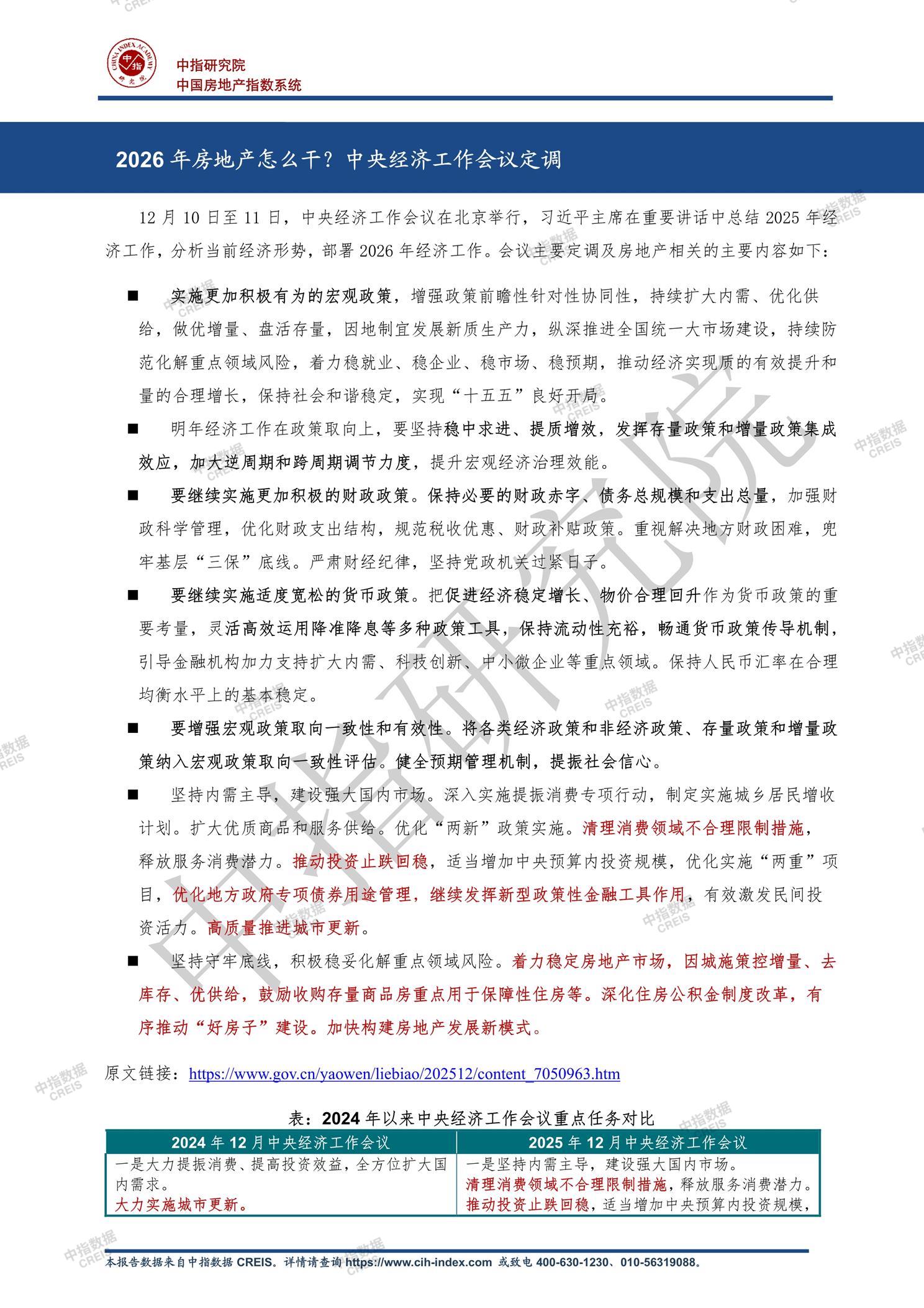 • [摘要] 《中指丨2026年房地产怎么干?中央经济工作会议定调》