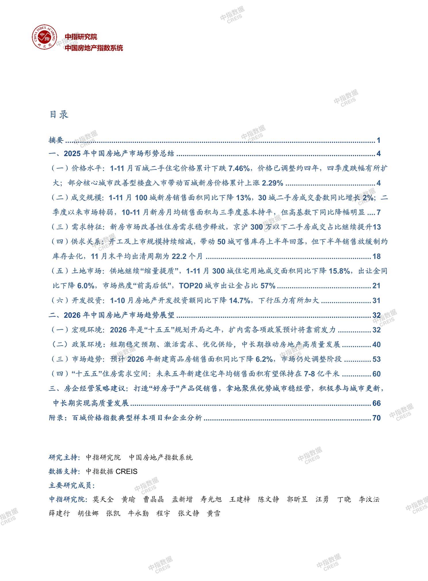 [摘要] 2025年中国房地产市场整体延续调整态势,二手房价格累计下跌7.46%,新房价格结构性上涨2.29%,但城市分化显著。销售规模同比下降,其中100城新房销售面积降13%,30城二手房成交增2%。土地市场"缩量提质",300城住宅用地成交面积降15.8%,房企拿地聚焦核心城市。开发投资额同比下降14.7%,房企资金端承压。 2026年市场预计仍处调整阶段,中性情形下新房销售面积将下降6.2%。政策层面短期以稳定预期、激活需求为主,中长期推动高质量发展,包括完善基础制度、优化保障房供给、建设"好房子"等。"十五五"期间年均住房需求约7-8亿平米,改善性需求占比提升至四成。 房企应聚焦产品力提升,审慎拿地,参与城市更新,适应行业新发展模式。当前市场分化加剧,核心城市优质地块竞争激烈,需通过"轻重并举"转型实现稳健发展。 【此内容为AI自动生成】