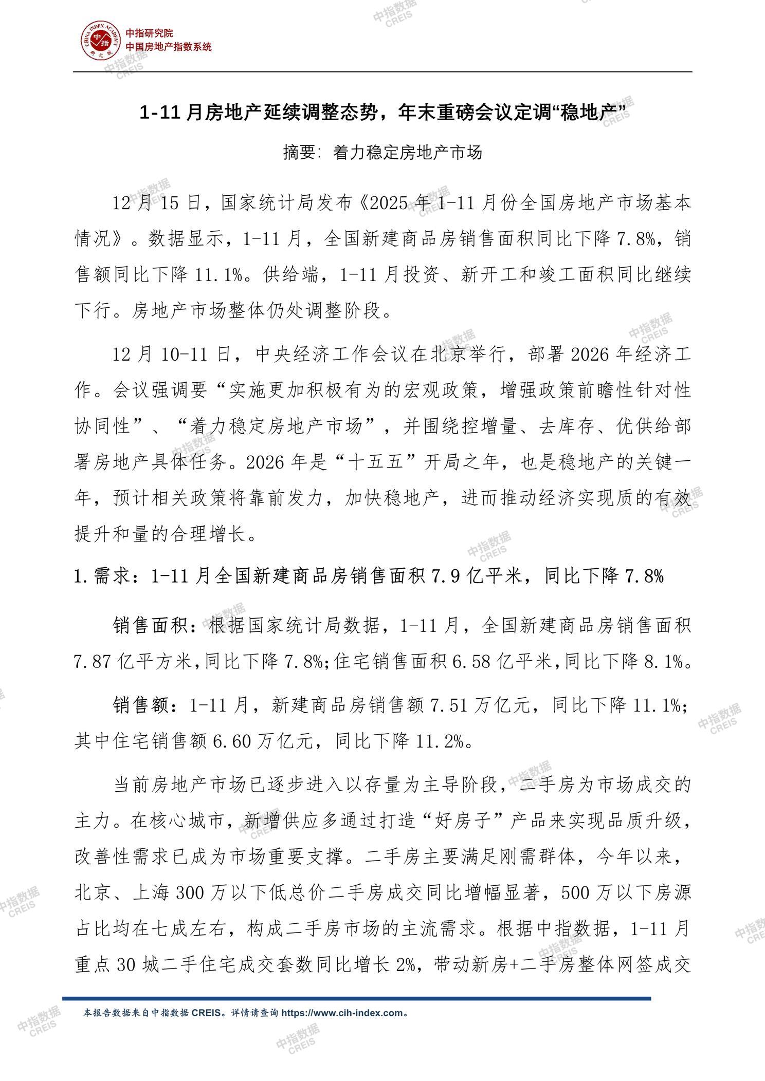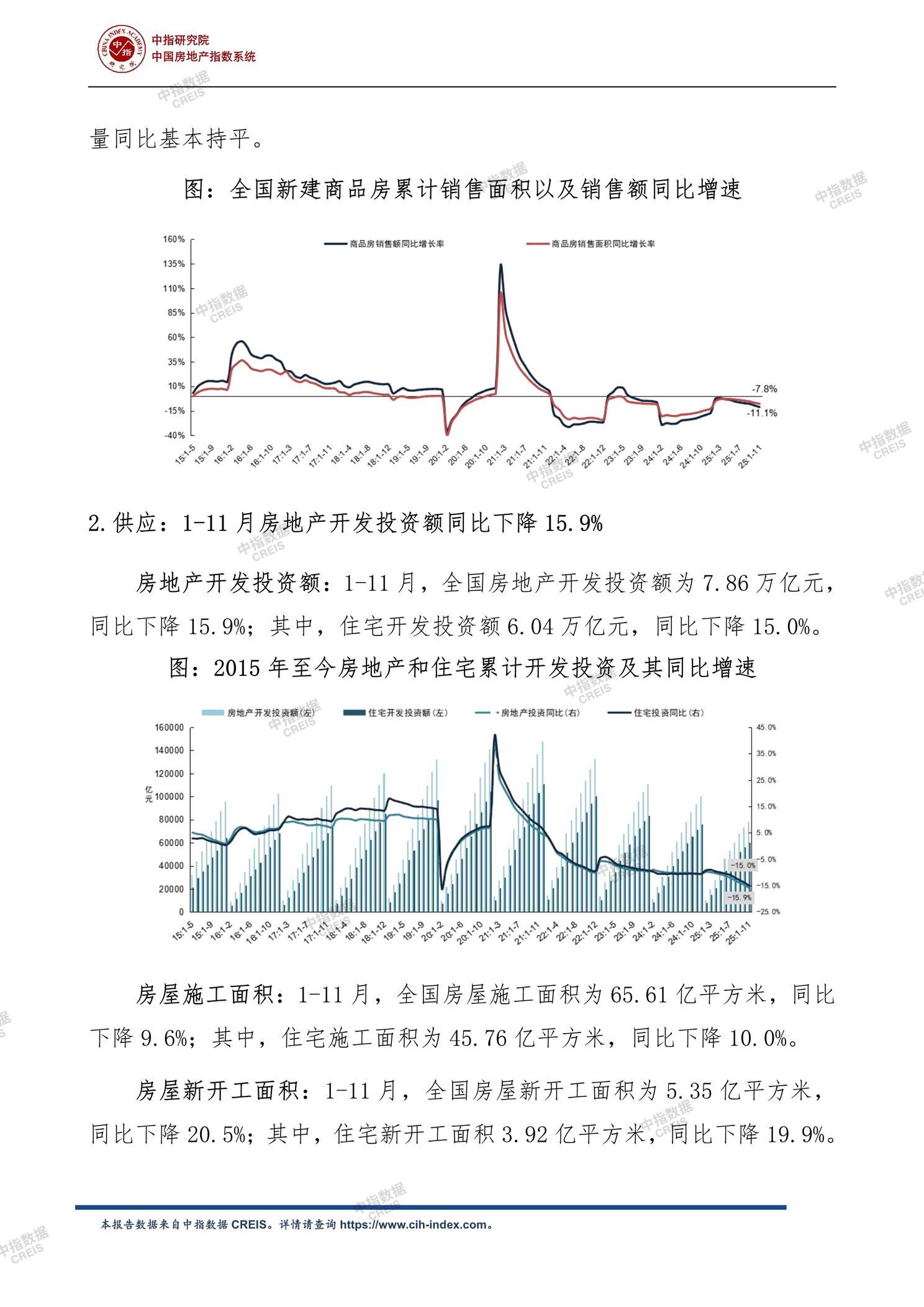 《中指丨2025年1-11月全国房地产开发经营数据解读》
