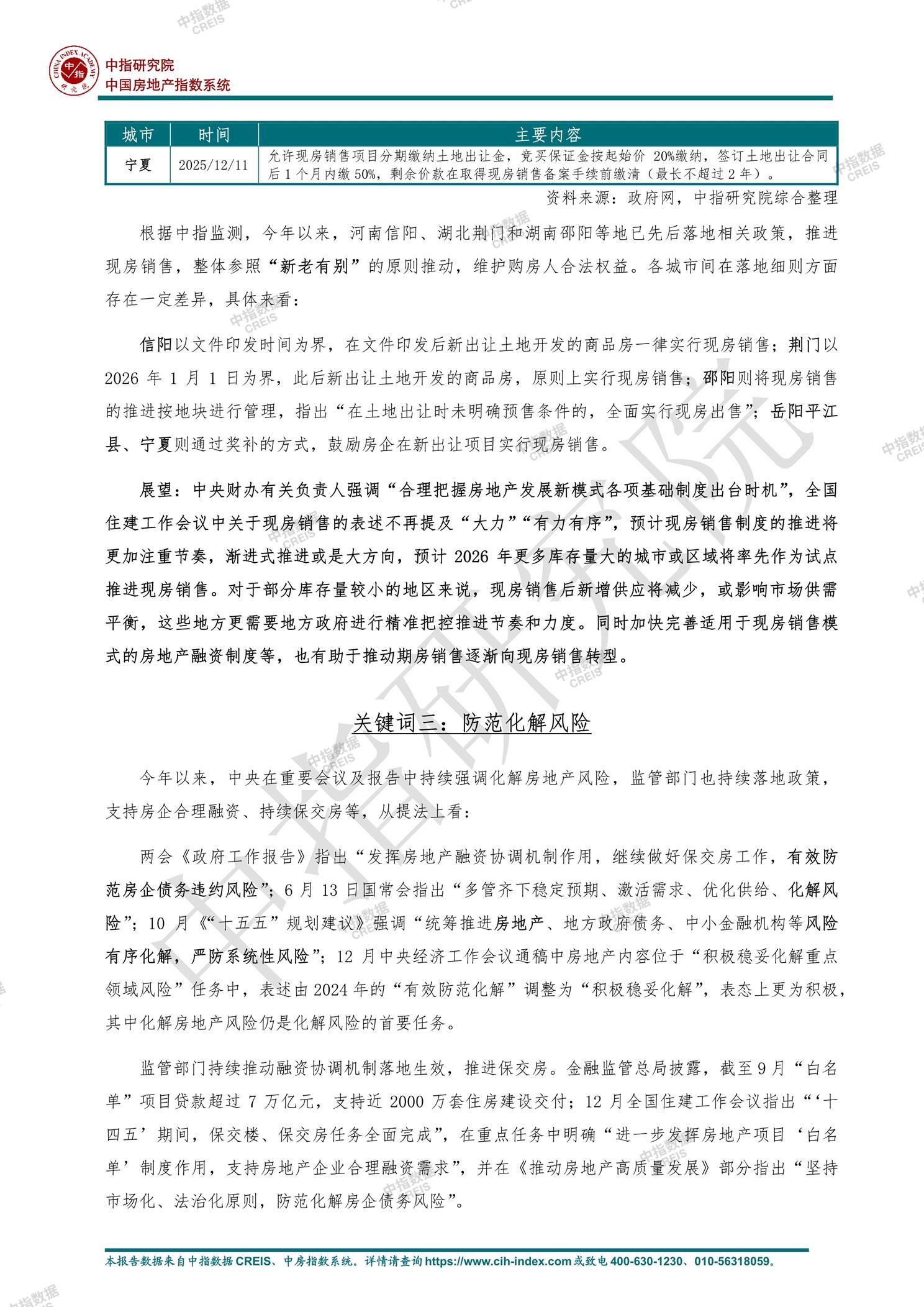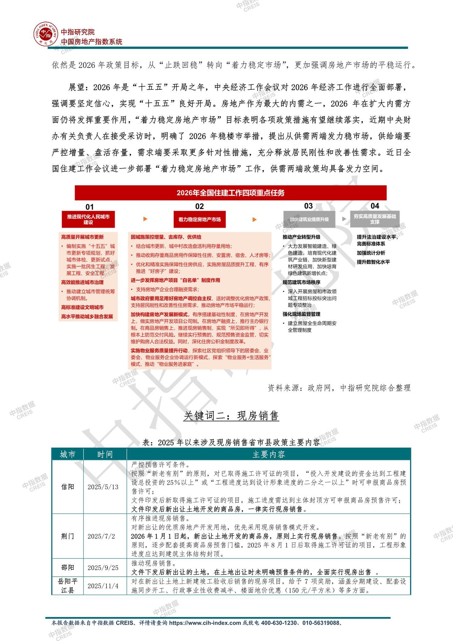 [摘要] 2025年中国楼市政策围绕“止跌回稳”核心目标展开,中央通过十大关键词系统部署调控方向。短期政策聚焦稳市场:供需两端协同发力,供给端严控增量、盘活存量土地及商品房(如专项债收储超6800亿元),需求端清理不合理限制性措施(如北上深优化限购),推进城中村改造与房票安置释放需求。中长期改革加速构建发展新模式:有序推动现房销售试点(信阳、荆门等)、完善房地产金融制度,强化“好房子”建设标准,建立房屋全生命周期管理。风险防控方面,白名单机制支持房企融资超7万亿元,保交楼交付近2000万套。展望2026年,政策将延续稳市场基调,通过城市更新、保障房建设等扩大内需,推动行业向高质量发展转型。 【此内容为AI自动生成】