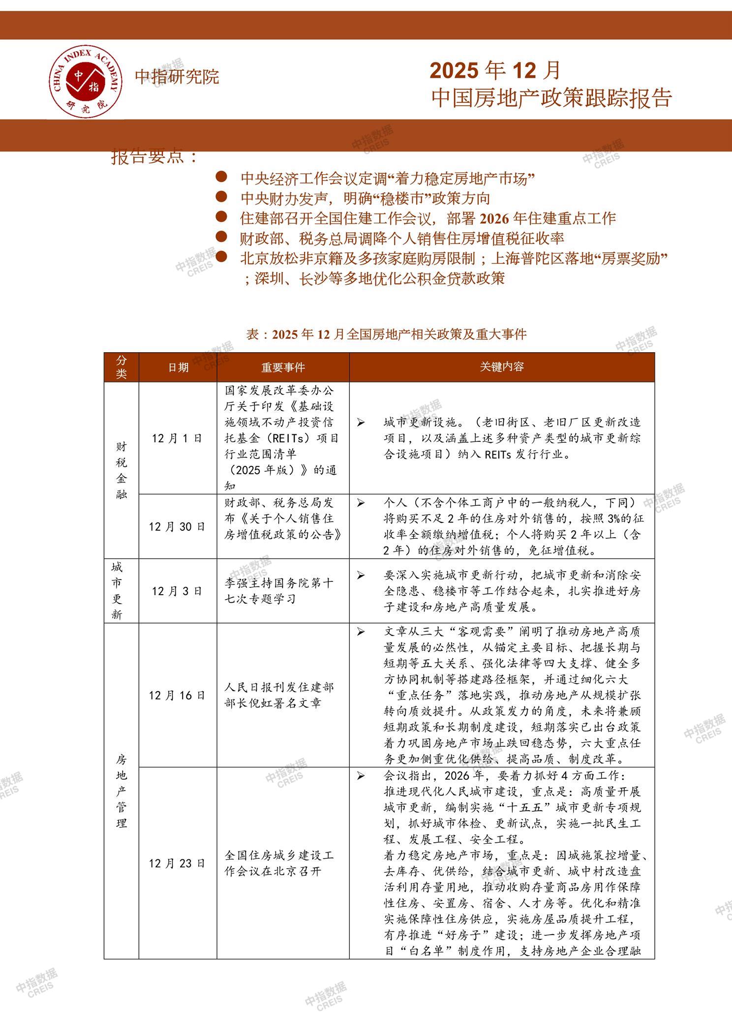 《中指丨中国房地产政策跟踪报告(2025年12月)》