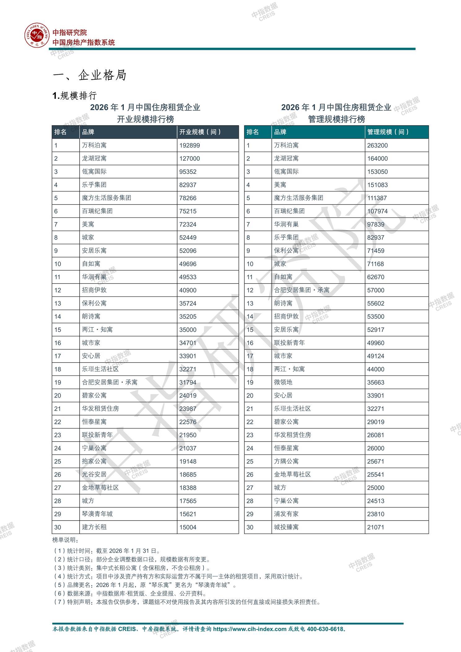 《中指|2026年1月中国住房租赁企业规模排行榜》