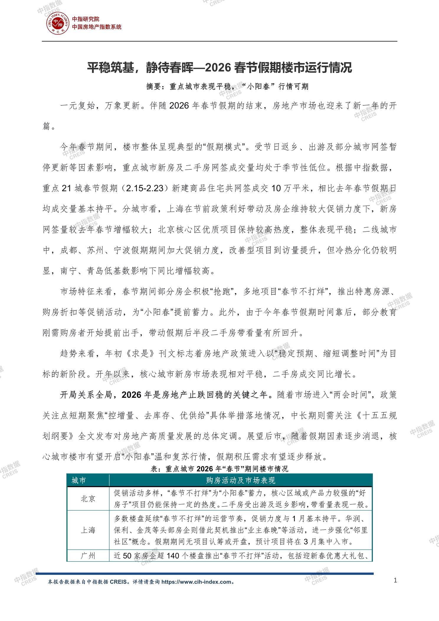 中指丨平稳筑基,静待春晖—2026春节假期楼市运行情况