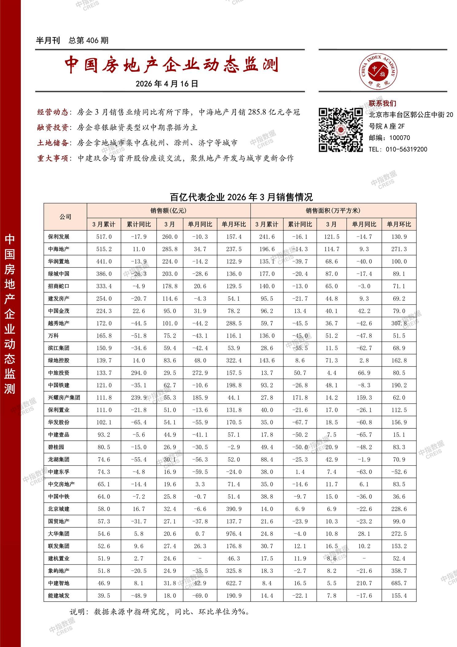 中国房地产企业动态监测第406期