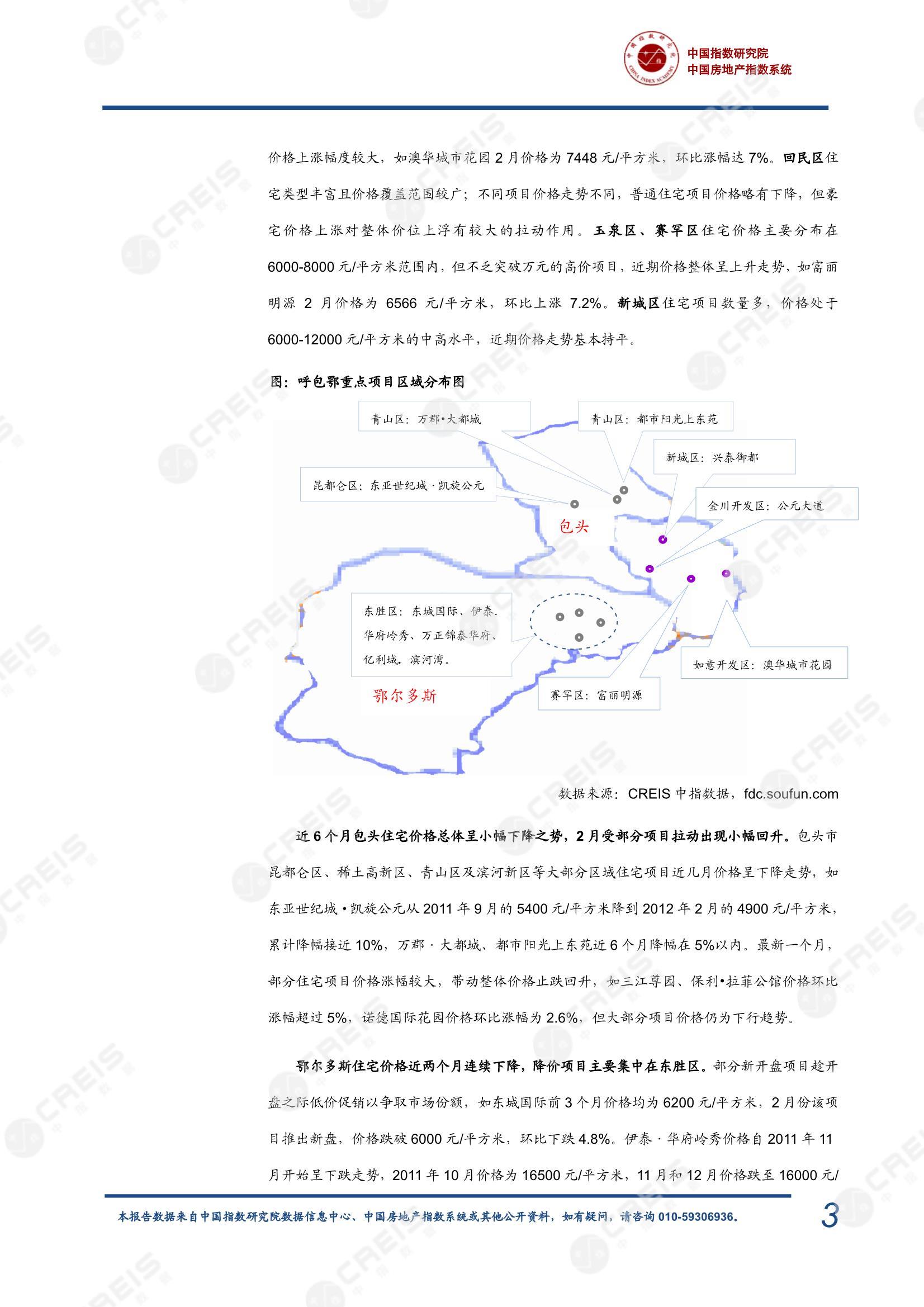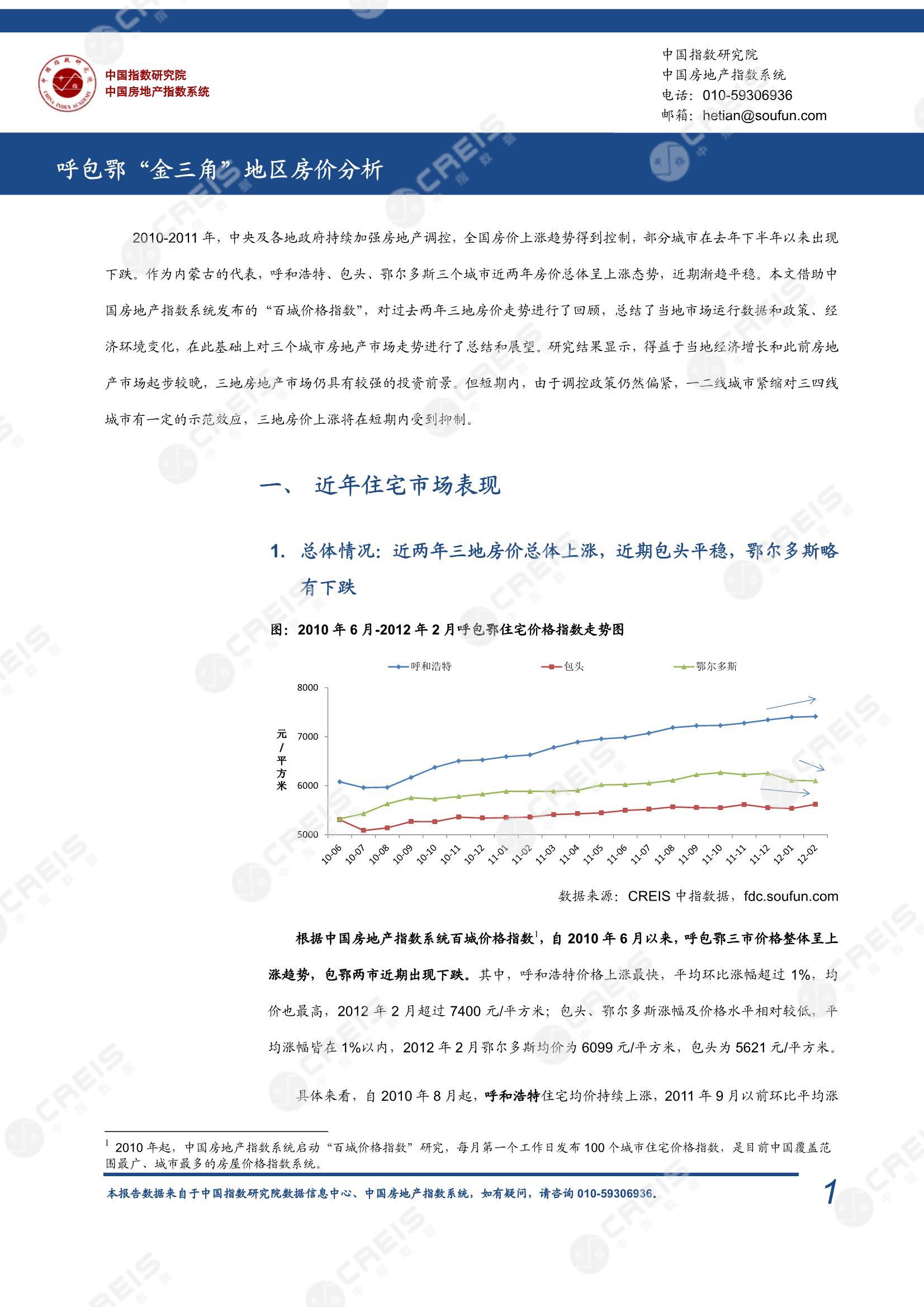 [摘要] 2010-2011年,中央及各地政府持续加强房地产调控,全国房价上涨趋势得到控制,部分城市在去年下半年以来出现下跌。作为内蒙古的代表,呼和浩特、包头、鄂尔多斯三个城市近两年房价总体呈上涨态势,近期渐趋平稳。本文借助中国房地产指数系统发布的“百城价格指数”,对过去两年三地房价走势进行了回顾,总结了当地市场运行数据和政策、经济环境变化,在此基础上对三个城市房地产市场走势进行了总结和展望。研究结果显示,得益于当地经济增长和此前房地产市场起步较晚,三地房地产市场仍具有较强的投资前景。但短期内,由于调控政策仍然偏紧,一二线城市紧缩对三四线城市有一定的示范效应,三地房价上涨将在短期内受到抑制。