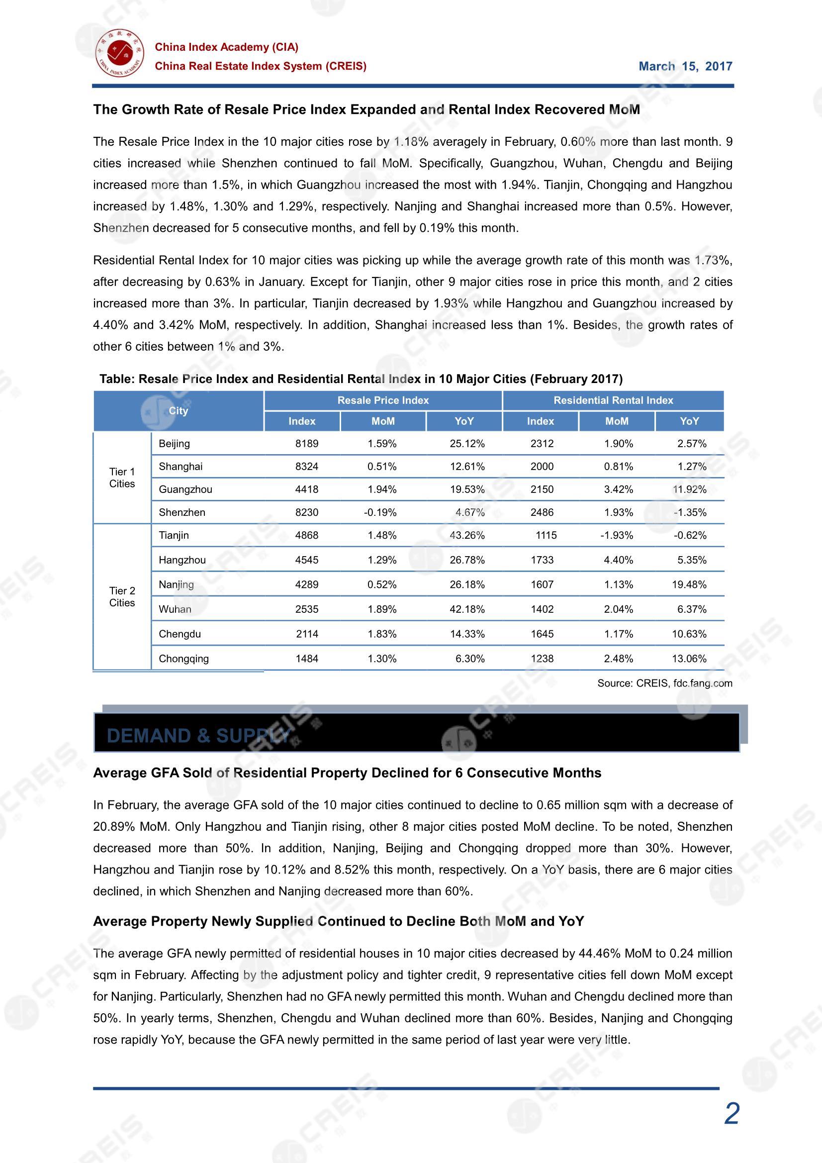 《CREIS China Property Market Monthly (February 2017)》