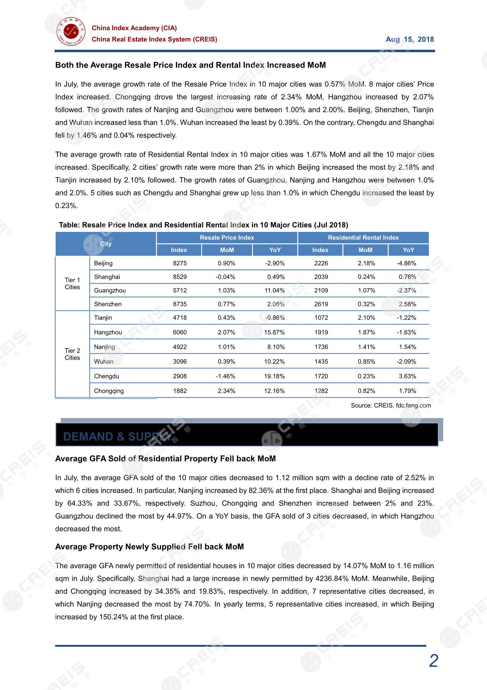 《CREIS China Property Market Monthly (July 2018)》