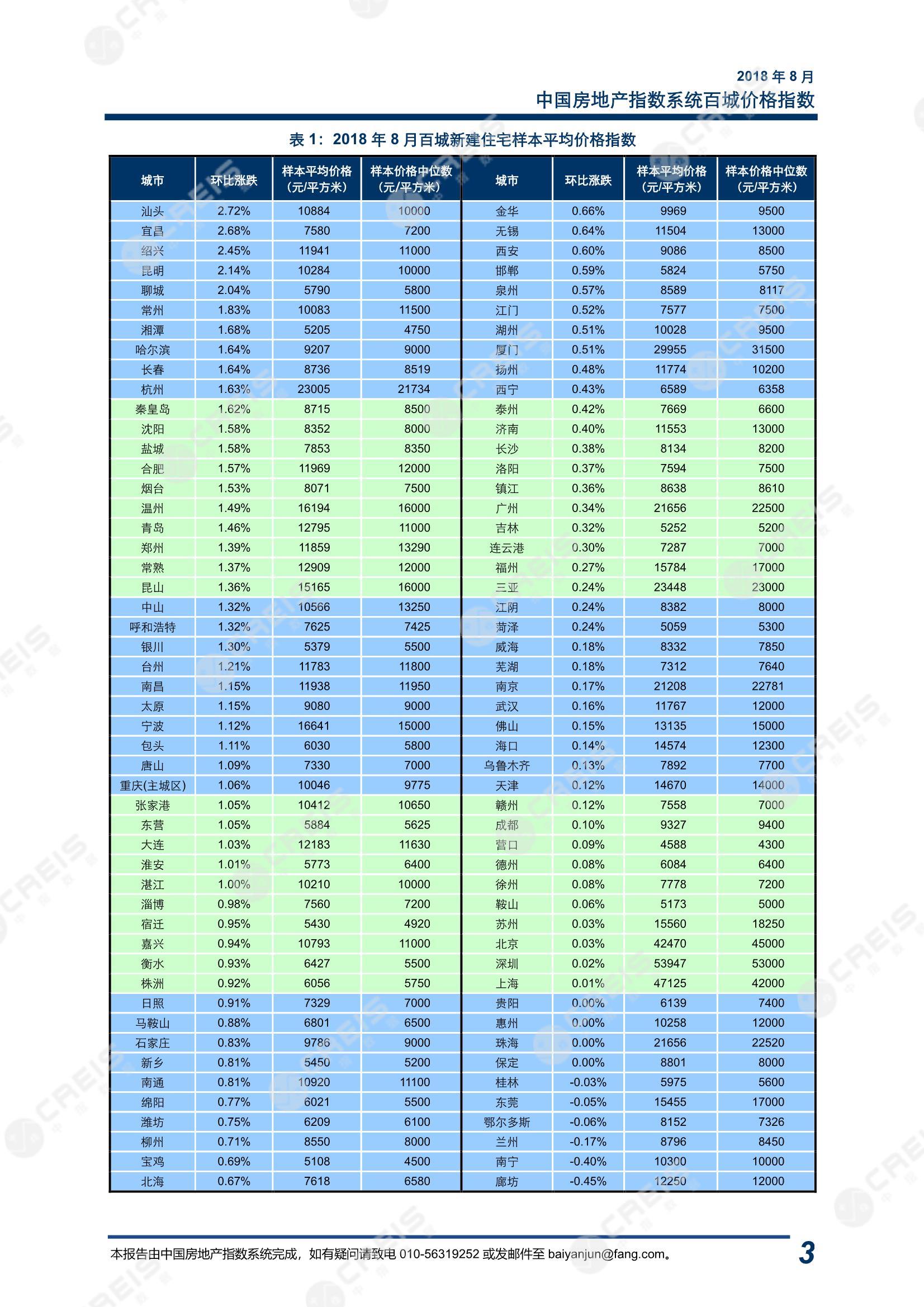 《2018年8月中国房地产指数系统百城价格指数报告》