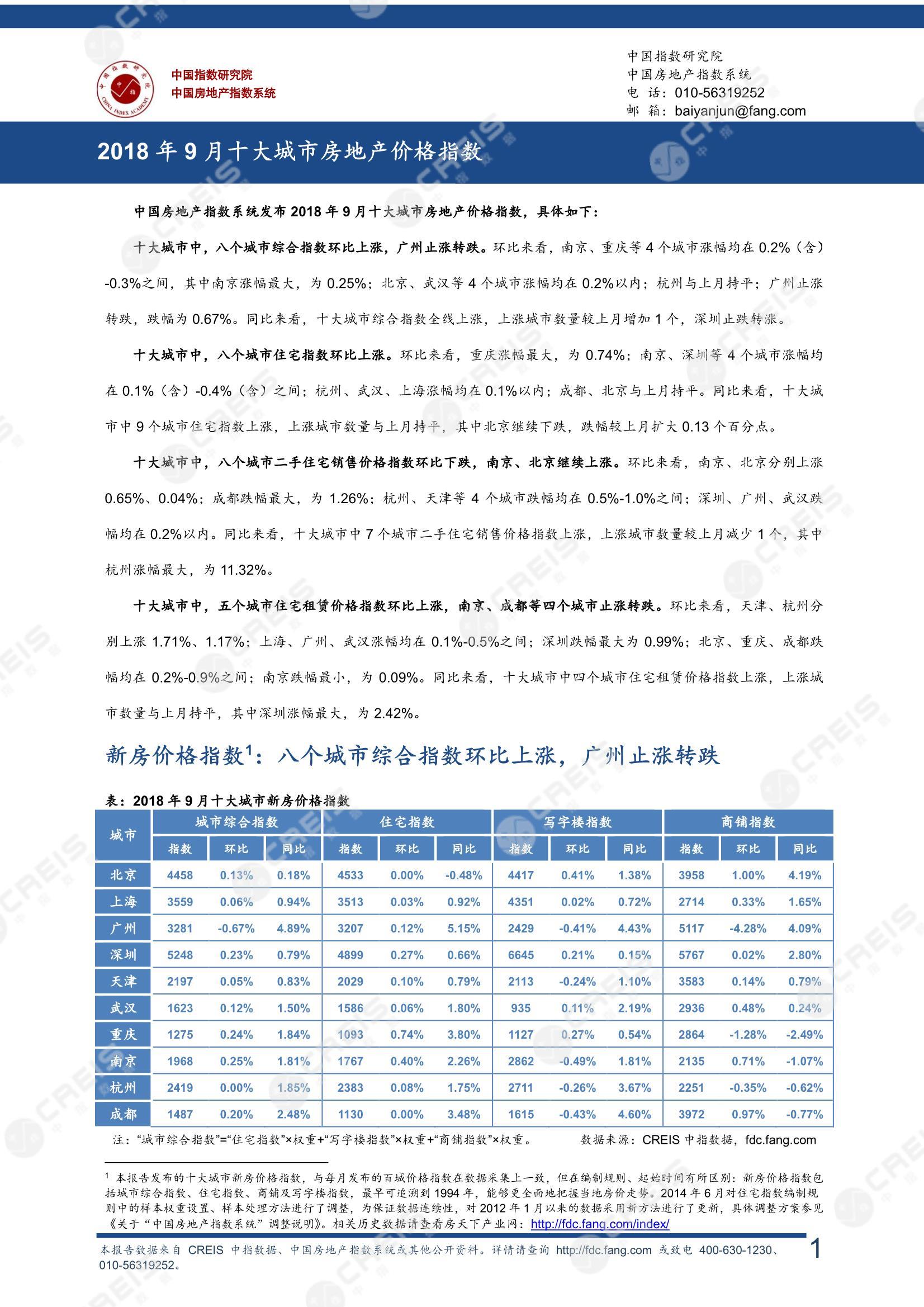 《十大城市房地产价格指数报告(20180901-20180930)》