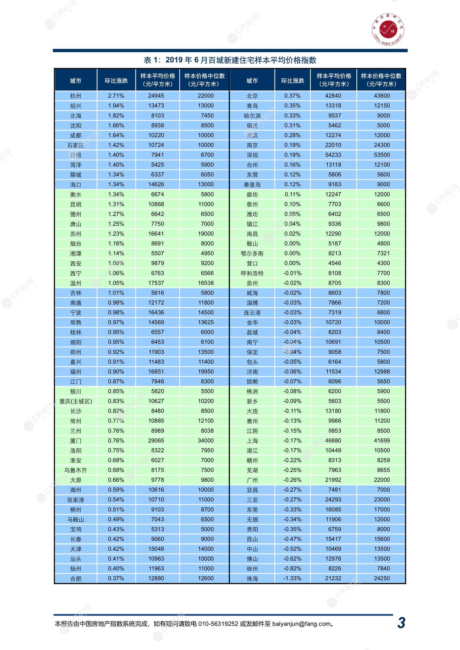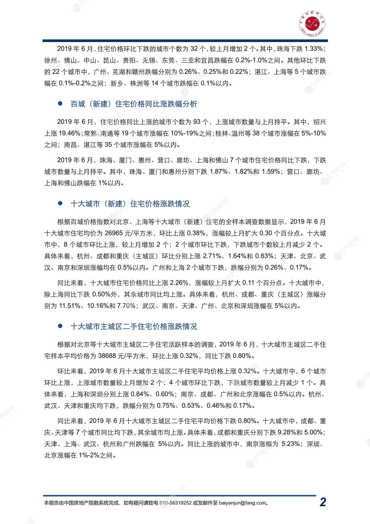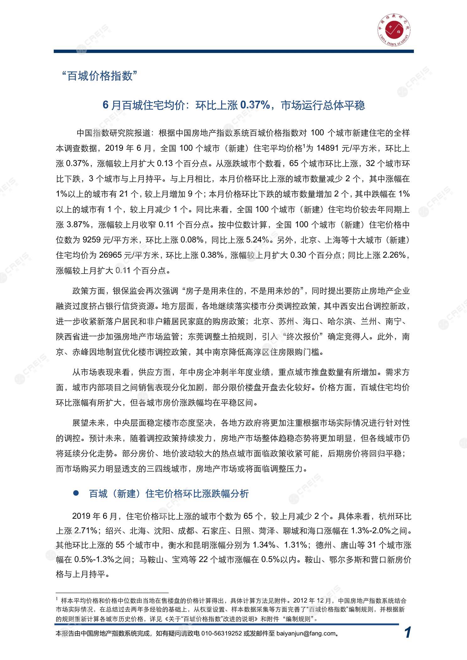 《2019年6月中国房地产指数系统百城价格指数报告》