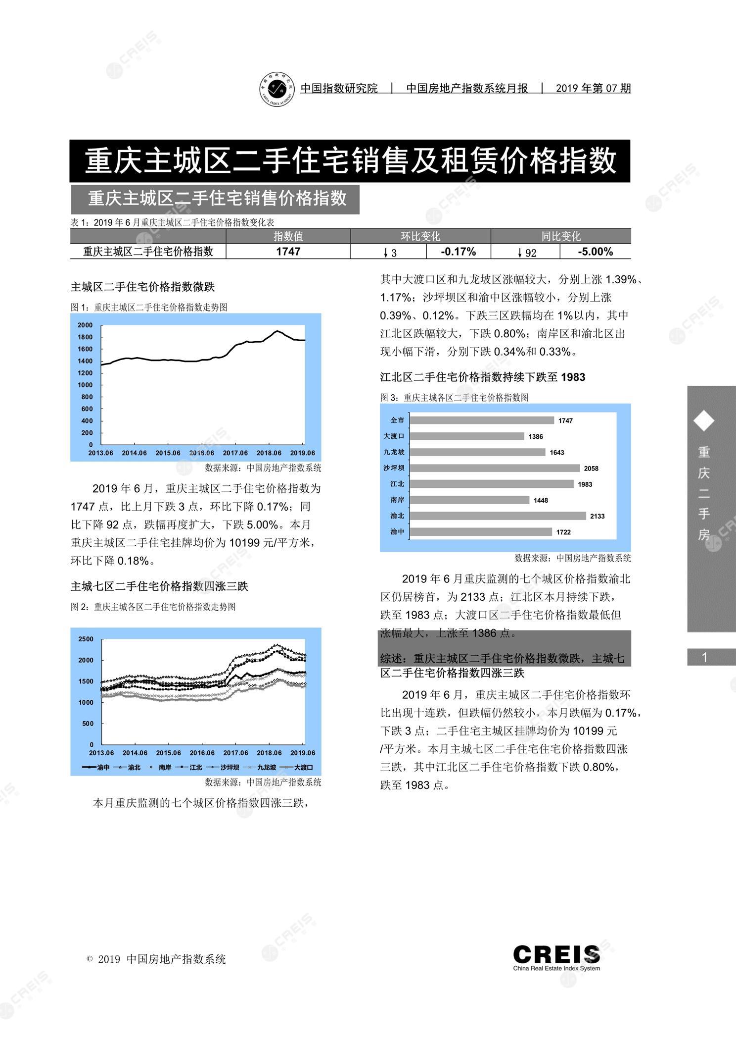《重庆主城区二手住宅销售及租赁价格指数报告(2019年6月)》