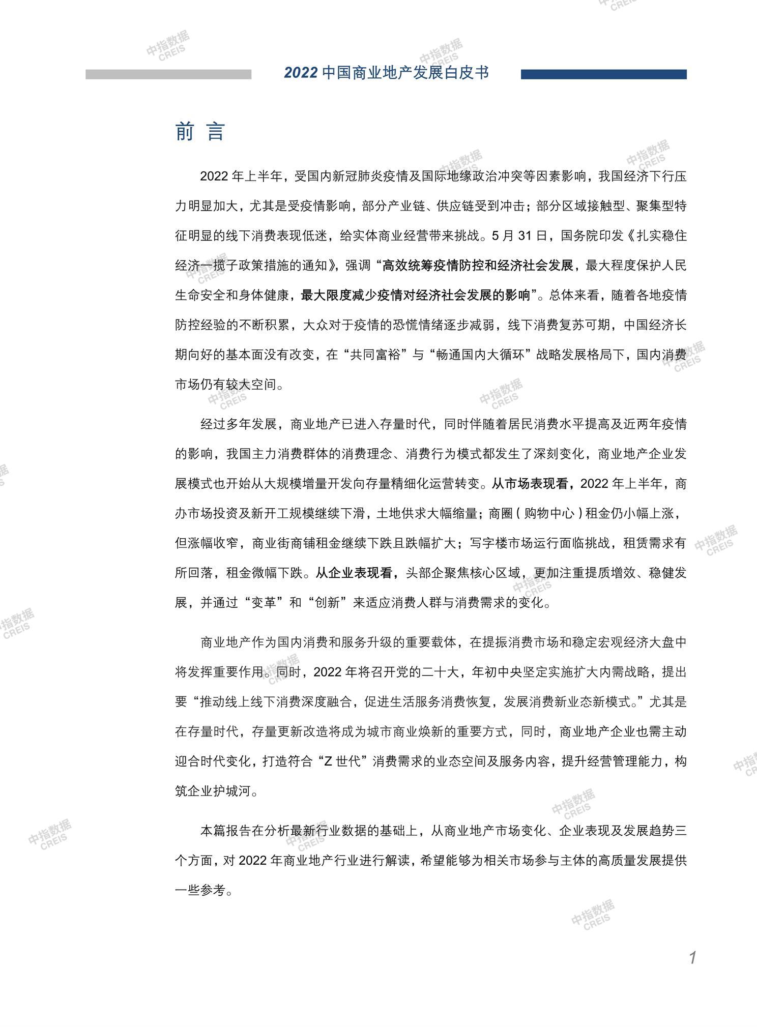 [摘要] 2022年上半年,受国内新冠肺炎疫情及国际地缘政治冲突等因素影响,我国经济下行压力明显加大,部分产业链、供应链受到冲击,接触型、聚集型特征明显的线下消费表现低迷,给实体商业经营带来挑战。但中国经济长期向好的基本面没有改变,在“共同富裕”与“畅通国内大循环”战略发展格局下,国内消费市场仍有较大空间。商业地产企业也需主动迎合时代变化,打造符合“Z世代”消费需求的业态空间及服务内容,提升经营管理能力。