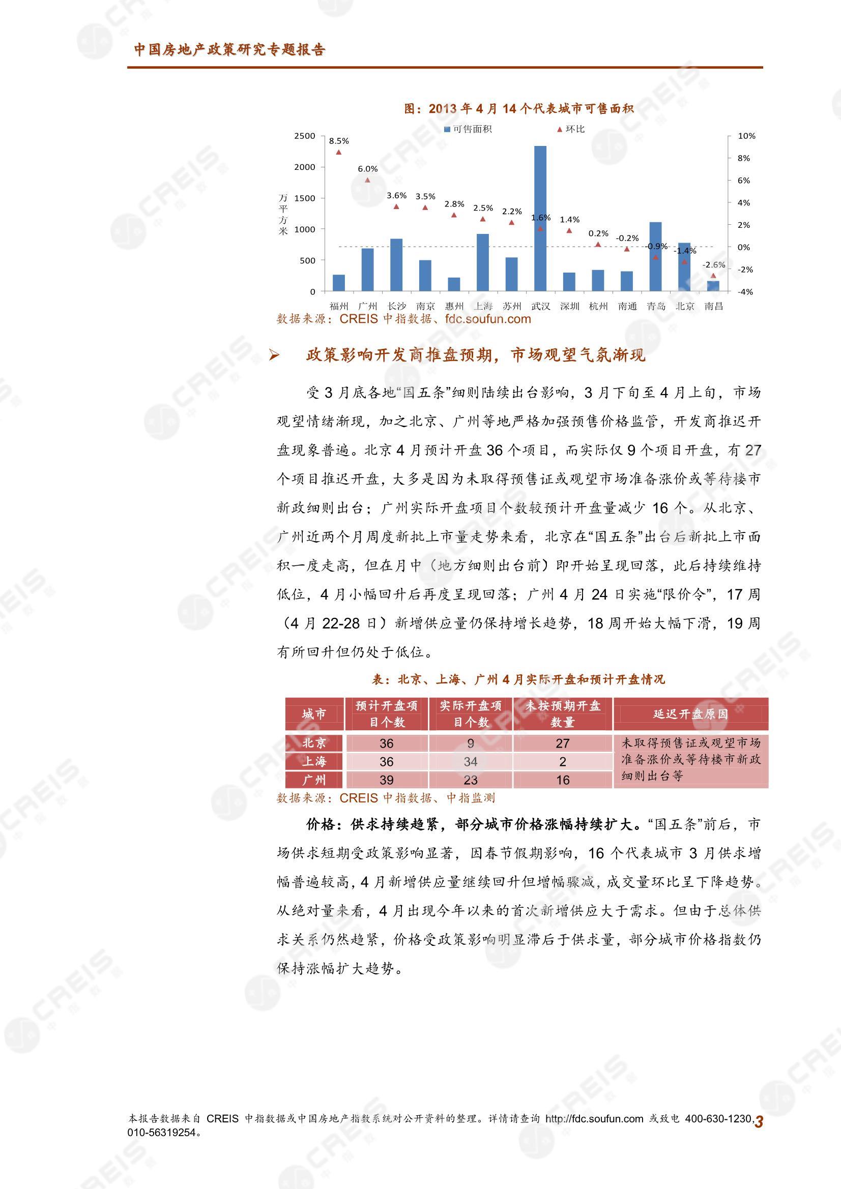 • [摘要] 一、4月新增供应回升,但出清周期处于近两年低位;供需双方观望气氛渐现,开发商推迟开盘现象普遍 二、严格市场监管背景下企业多以观望为主,推盘节奏放缓;依然看好市场长期走势,积极加强土地储备 三、限购限价影响短期量价,根本解决供需矛盾需增加供应;市场有望维持向好趋势,但需警惕部分城市继续加压