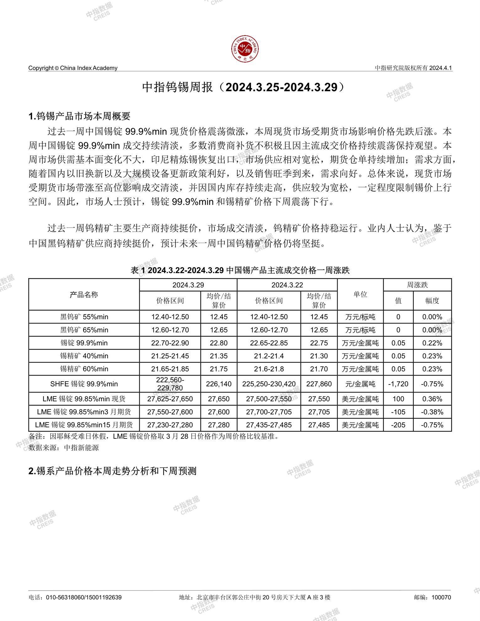 中指钨锡周报(2024.3.25-2024.3.29)