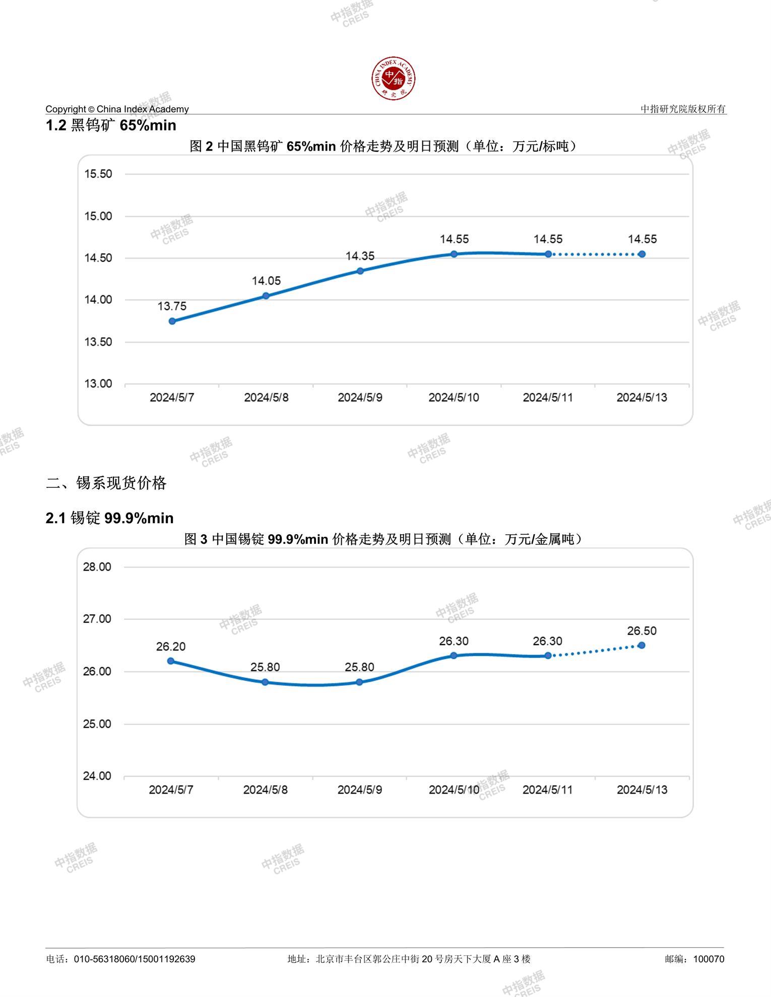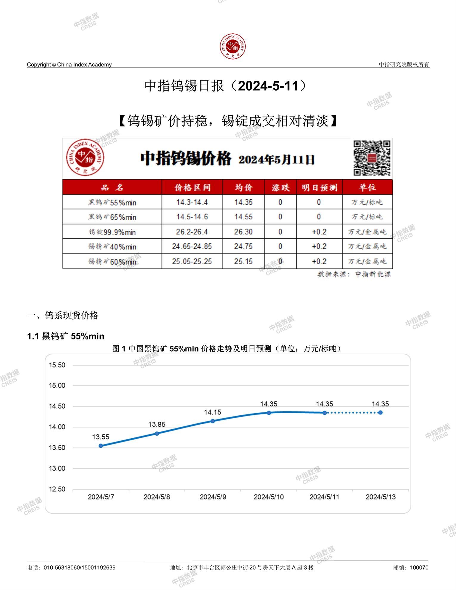 中指钨锡日报(2024-5-11)【钨锡矿价持稳,锡锭成交相对清淡】