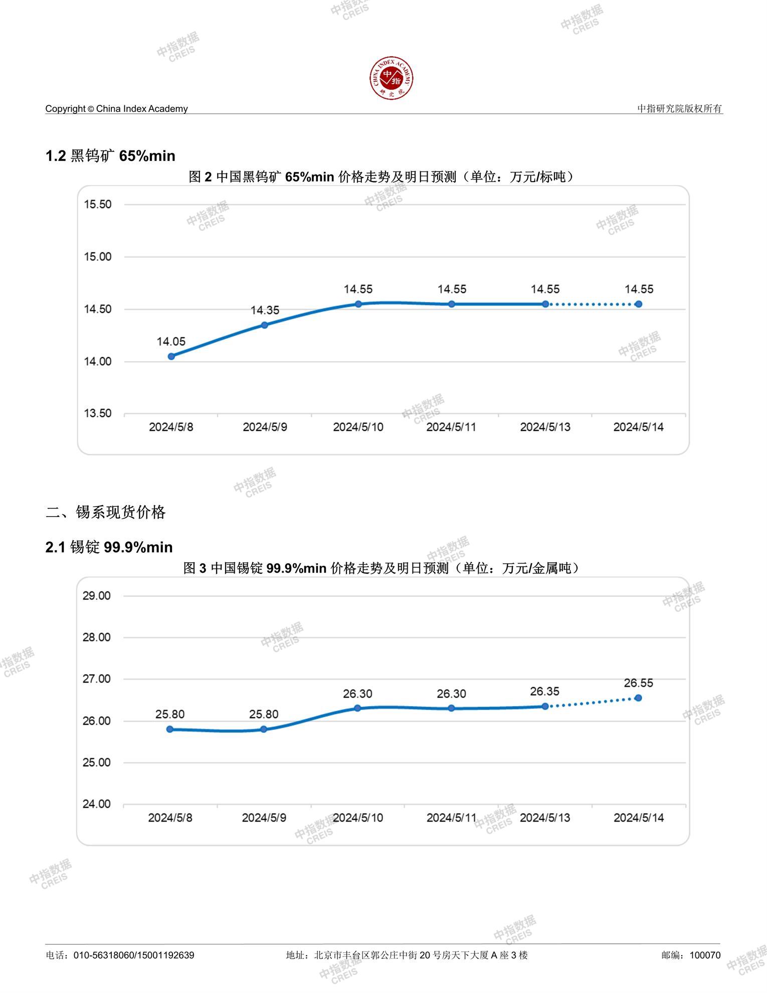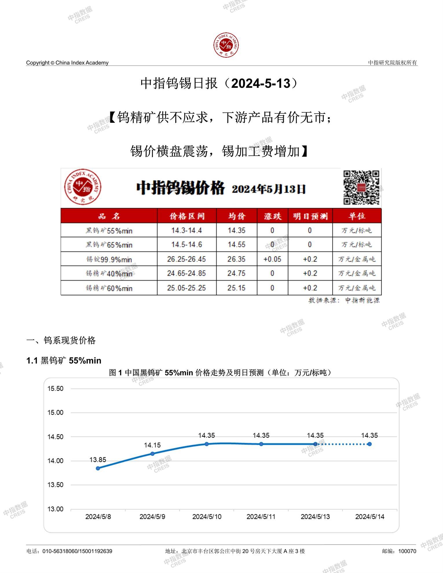 中指钨锡日报(2024-5-13)【钨精矿供不应求,下游产品有价无市;锡价横盘震荡,锡加工费增加】