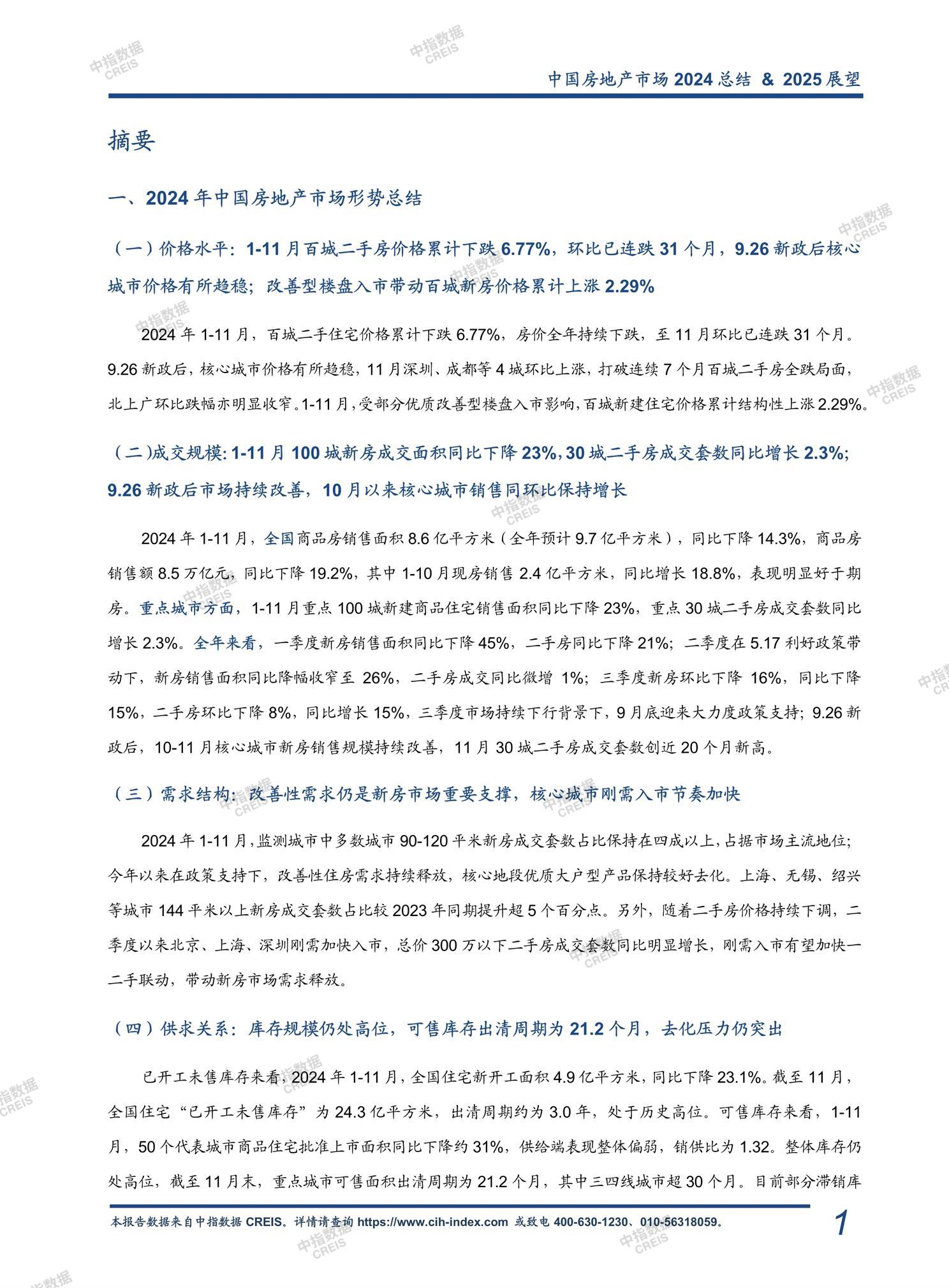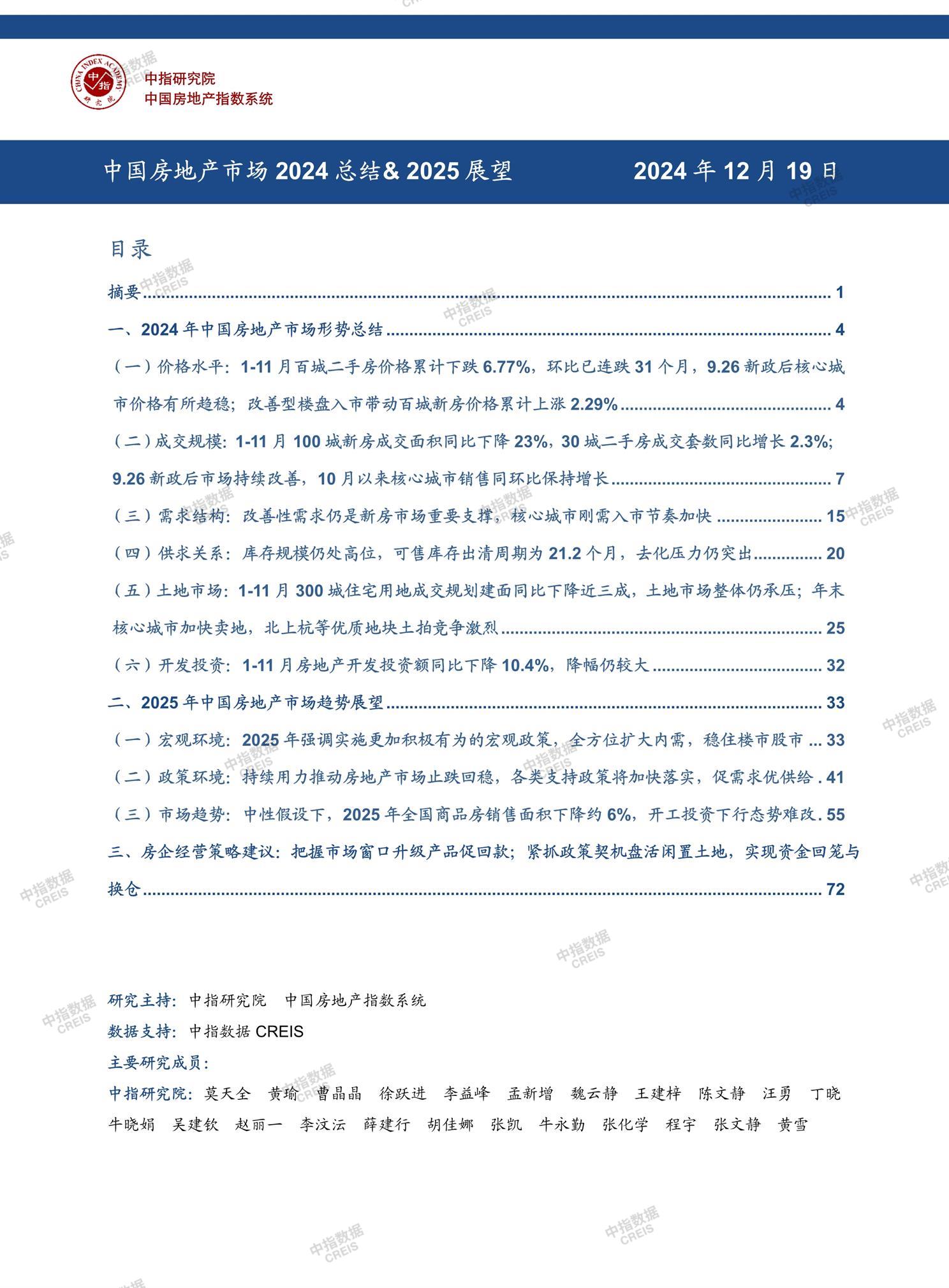《 中指 l 2024中国房地产市场总结&2025趋势展望》