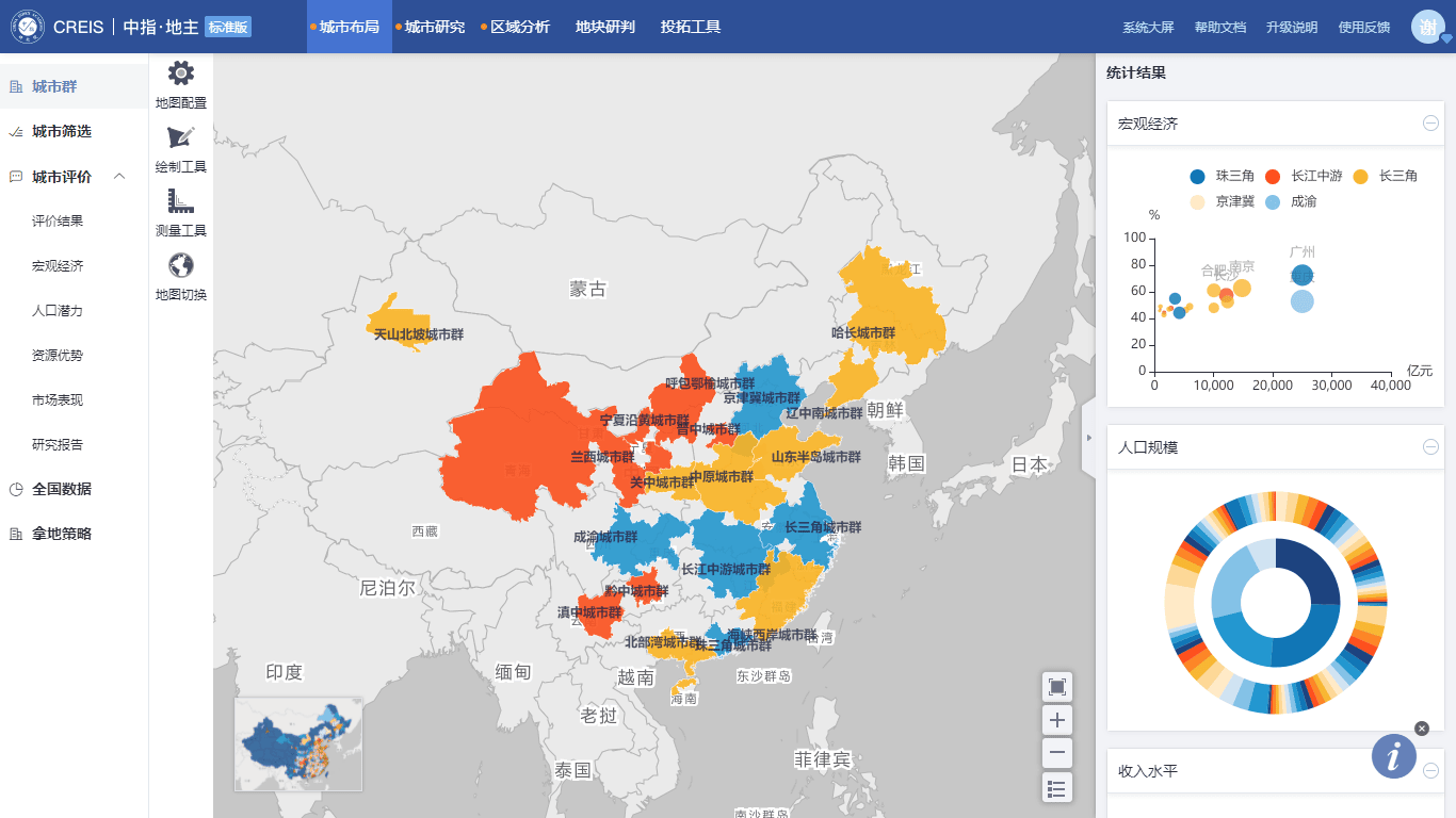 依托中指研究院上百位分析师建立的城市投资吸引力模型,以20年来积累的宏观经济、人口、资源、房地产市场等庞大数据为基础,对城市的投资价值进行对比分析,帮助企业初筛具有潜在进入机会的城市,完善房企城市布局。