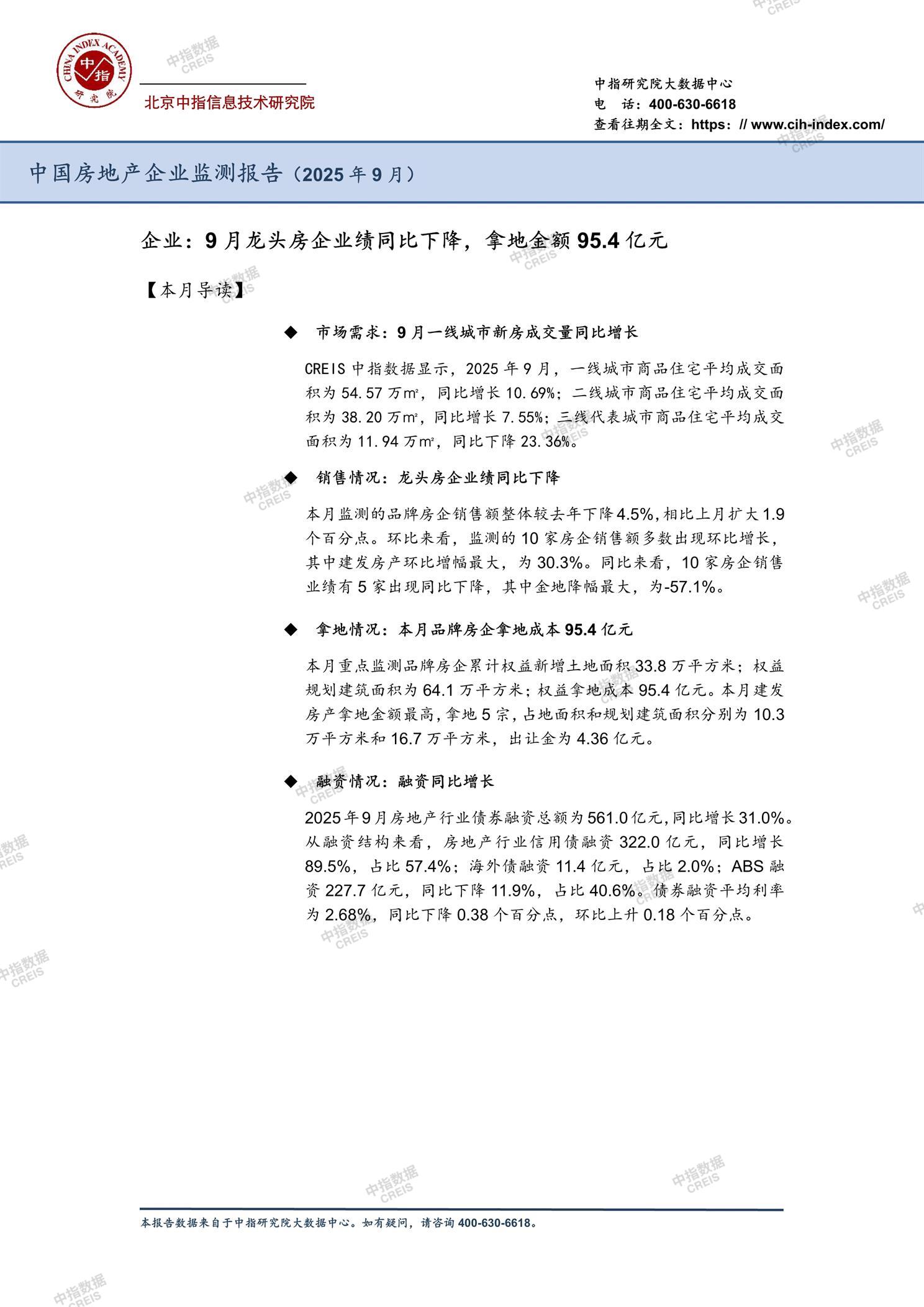中国房地产企业监测报告(2025年9月)