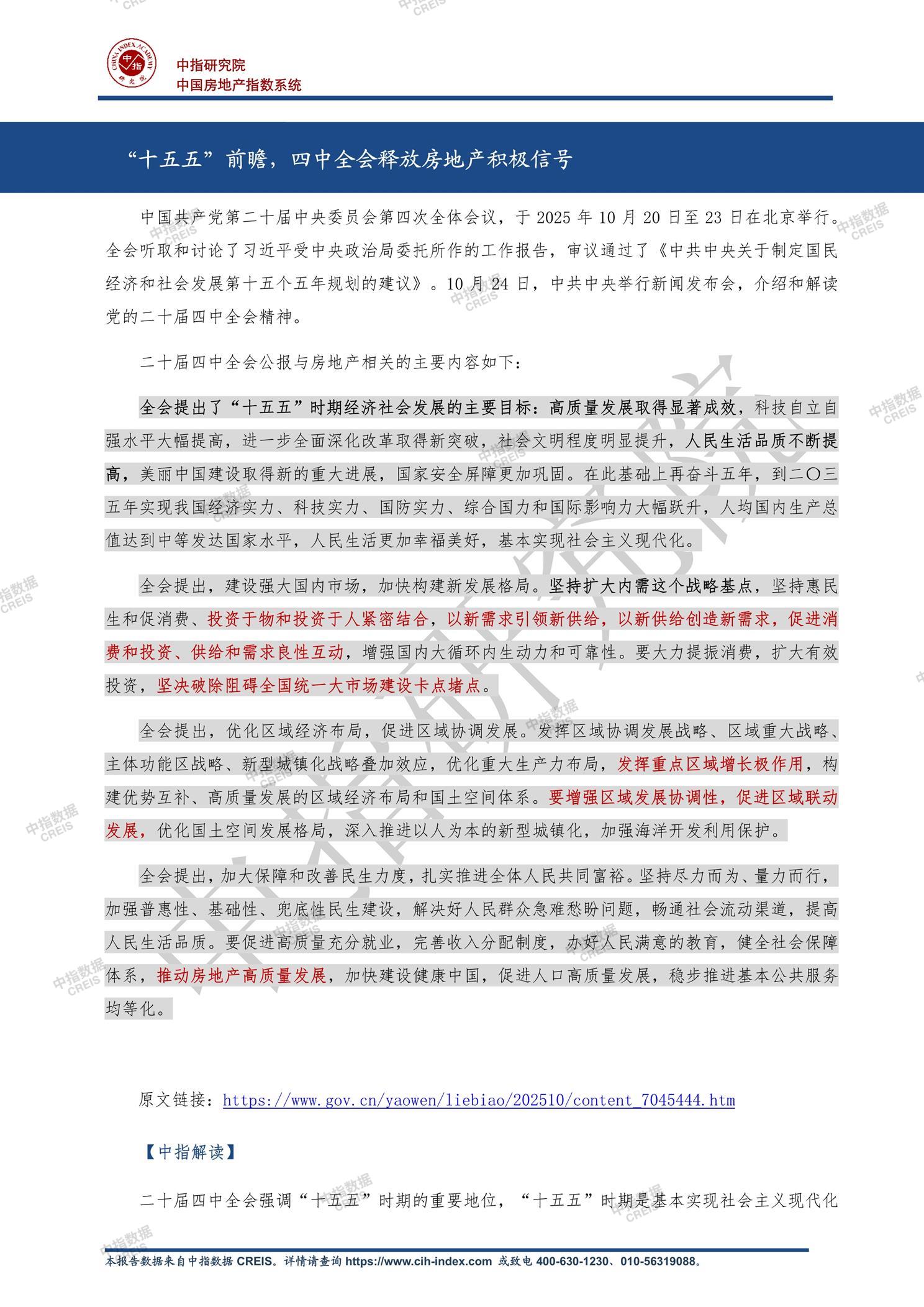 《中指丨“十五五”前瞻,四中全会释放房地产积极信号》