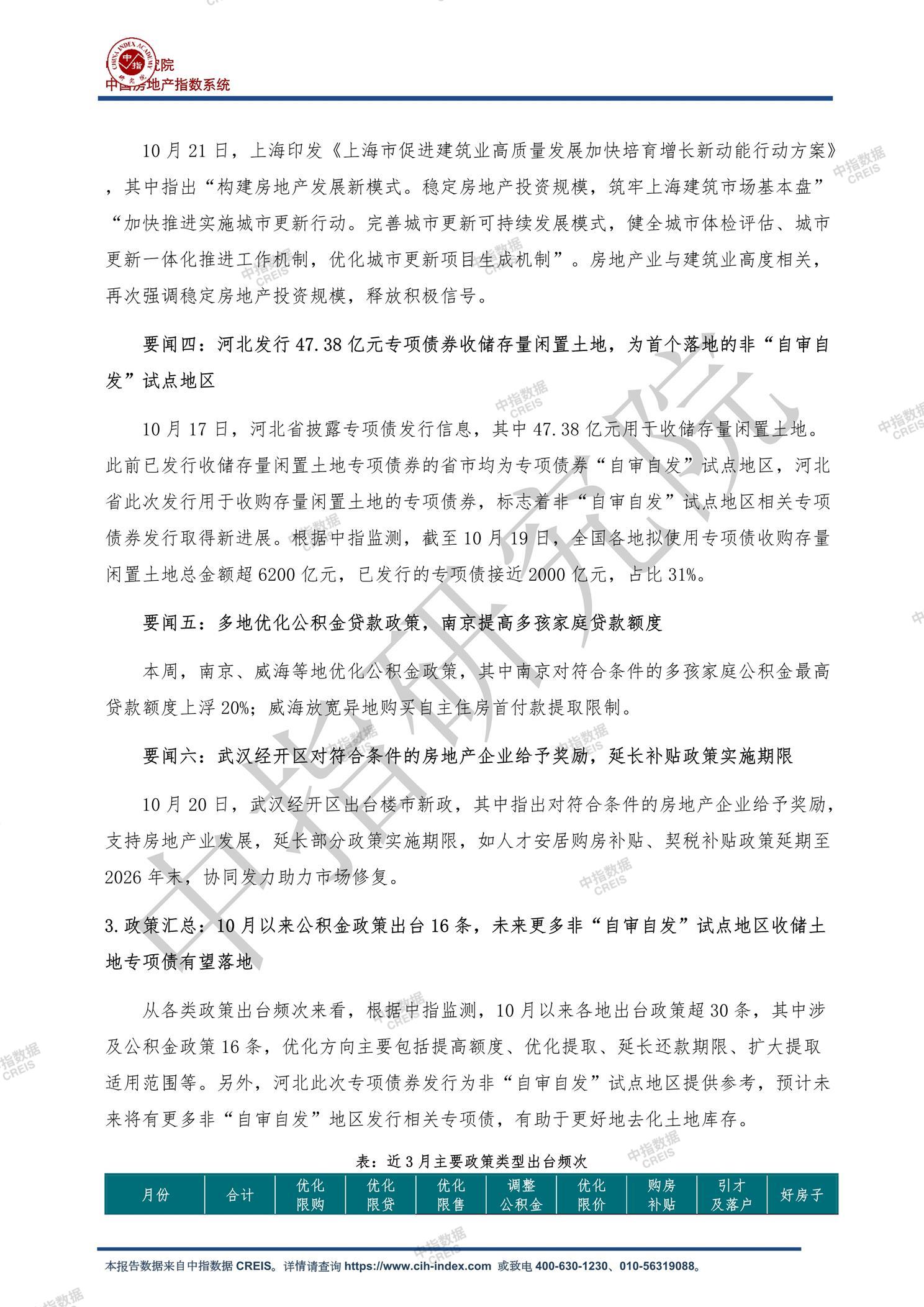 [摘要] 二十届四中全会于2025年10月20日至23日召开,审议通过“十五五”规划《建议》,明确提出推动房地产高质量发展,释放积极信号。上海强调稳定房地产投资规模,广州推进利用专项借款购买存量商品房作为安置房,河北发行专项债券收储存量闲置土地。多地优化公积金政策,如南京提高多孩家庭贷款额度,武汉经开区延长购房补贴政策至2026年末。10月以来各地出台房地产政策超30条,其中公积金政策16条,未来更多非“自审自发”试点地区有望发行收储土地专项债。 【此内容为AI自动生成】