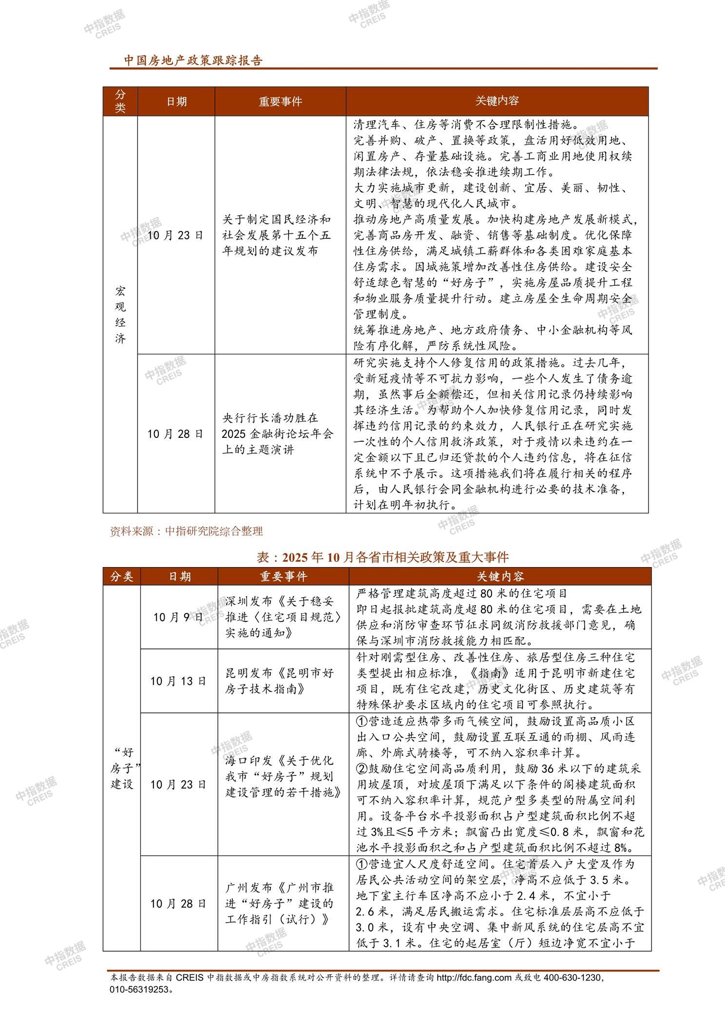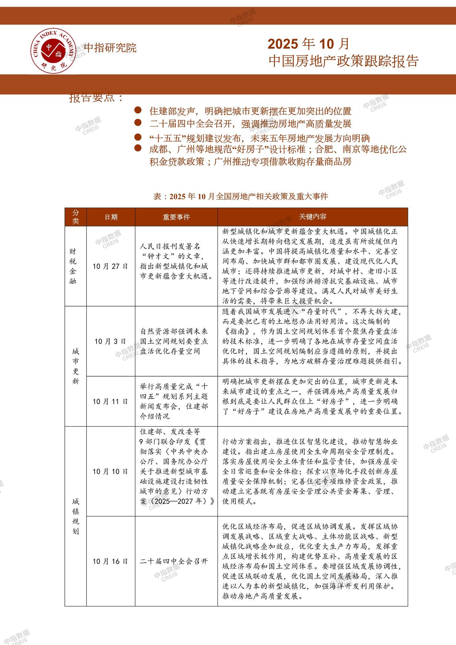 《中指丨中国房地产政策跟踪报告(2025年10月)》