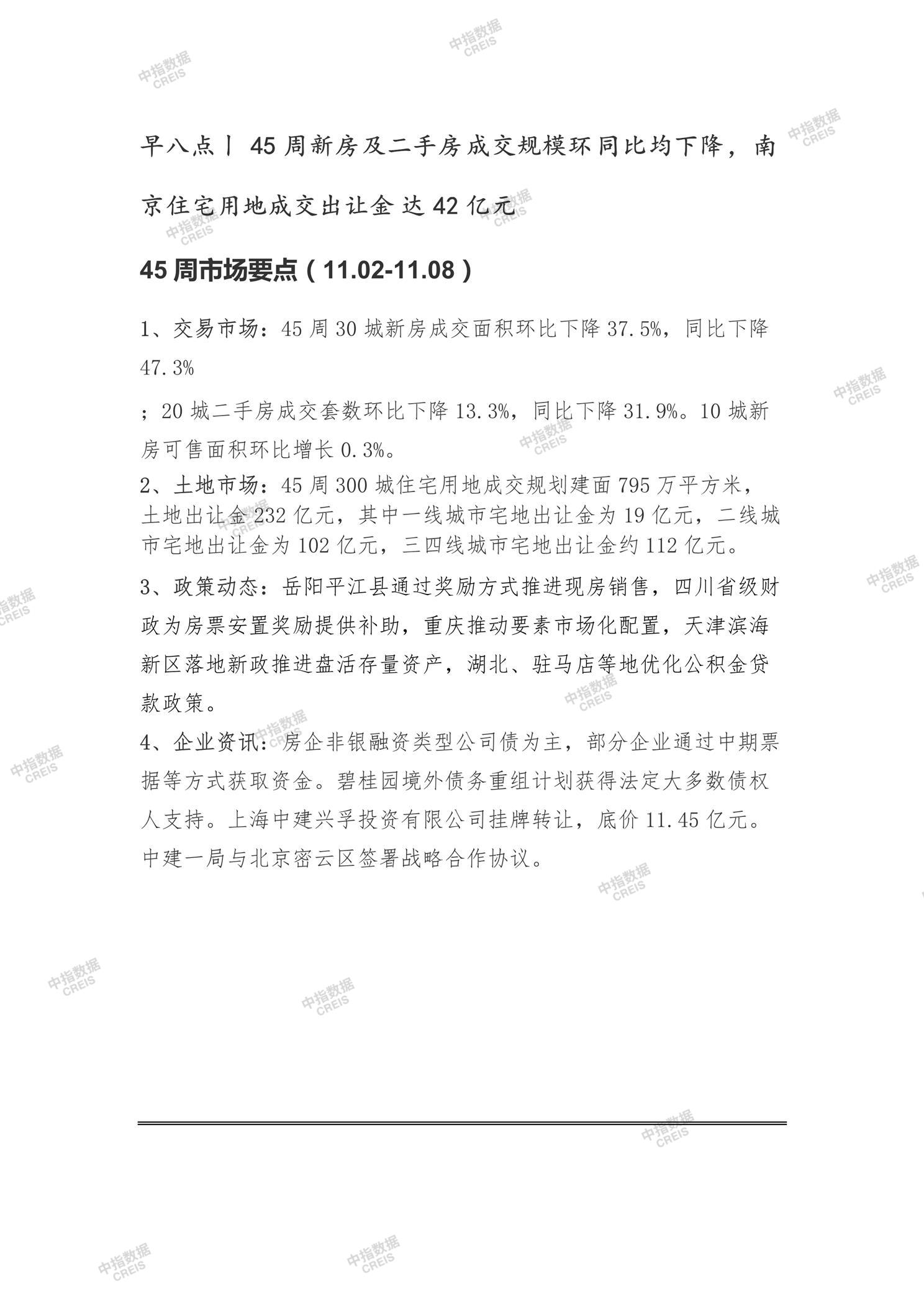 早八点丨45周新房及二手房成交规模环同比均下降,南京住宅用地成交出让金达42亿元