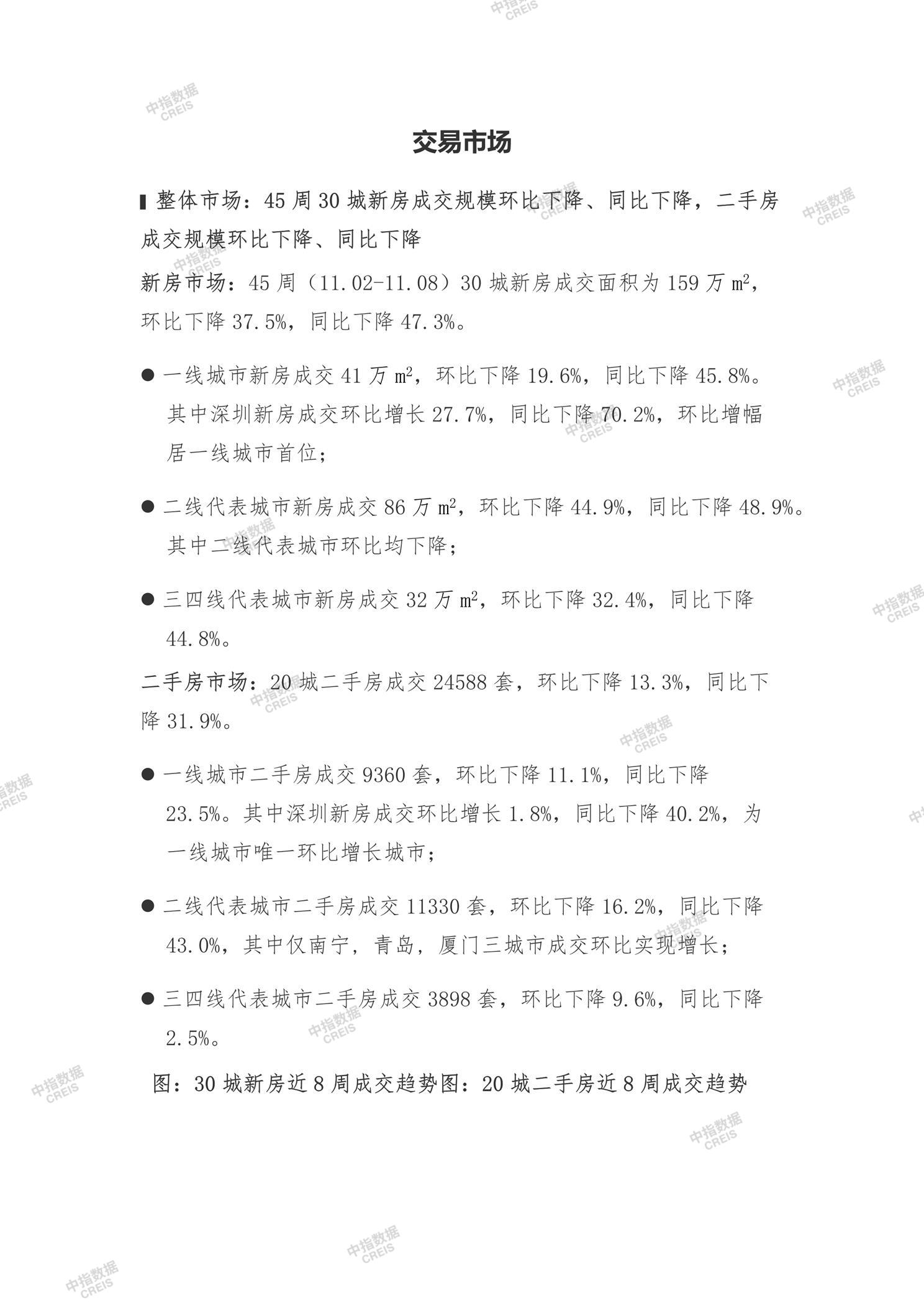 [摘要] 45周房地产市场数据显示新房及二手房成交规模环比同比均下降,30城新房成交面积环比下降37.5%,同比下降47.3%;20城二手房成交套数环比下降13.3%,同比下降31.9%。土地市场方面,300城住宅用地成交规划建面795万平方米,出让金232亿元,其中南京宅地出让金42亿元居首。政策动态显示多地优化公积金政策,如湖北取消首套房和二套房贷款额度差异,岳阳平江县推进现房销售并给予奖励。企业资讯方面,碧桂园境外债务重组获债权人支持,房企融资以公司债为主,部分企业通过中期票据等方式获取资金。整体市场呈现成交下滑但政策支持力度加大的特点。 【此内容为AI自动生成】
