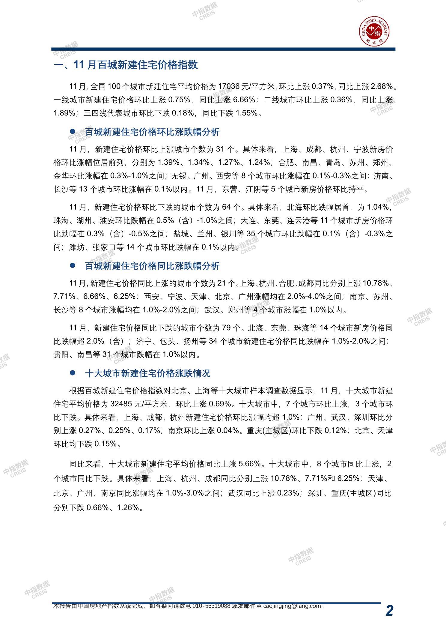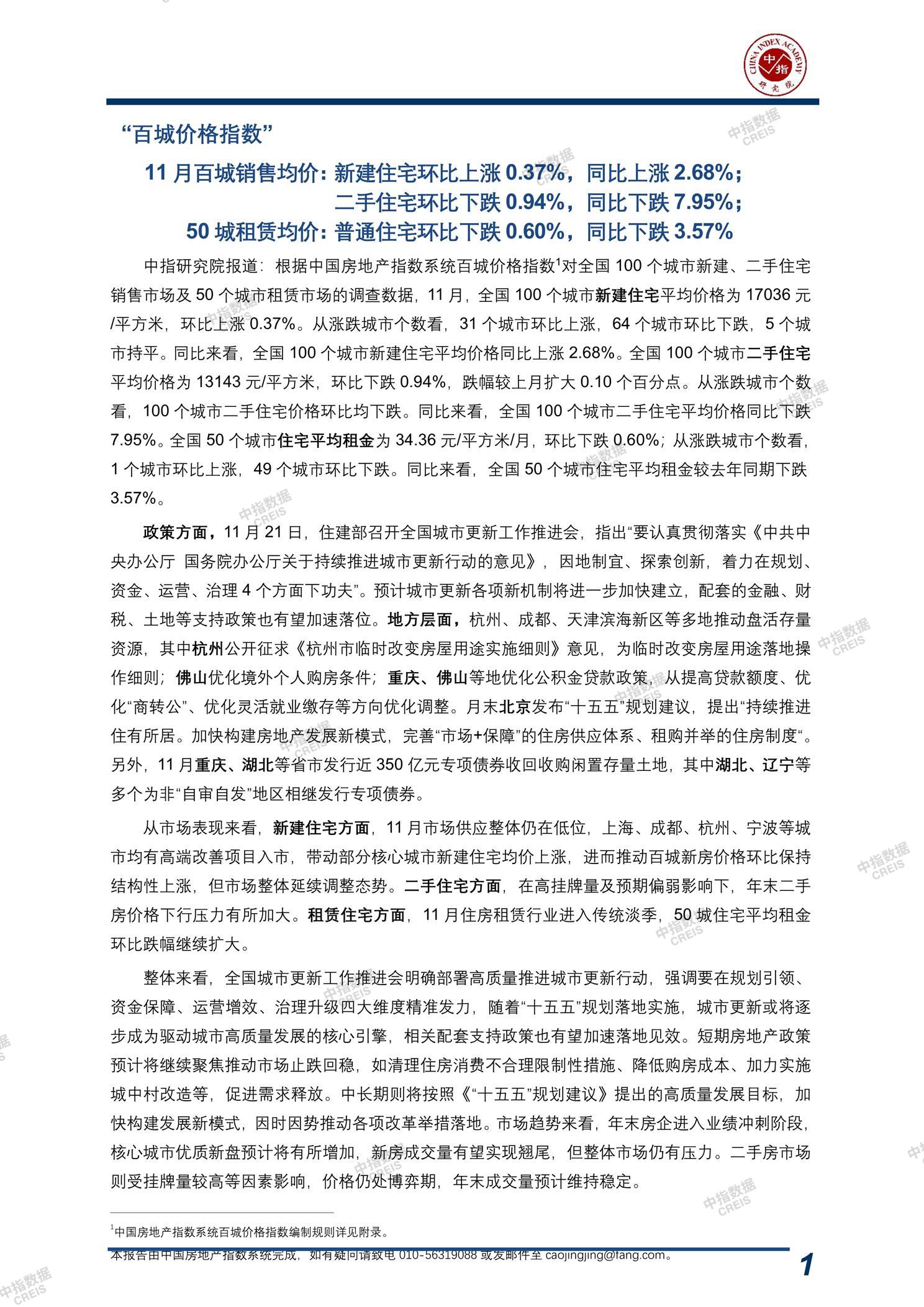 中国房地产指数系统百城价格指数报告(2025年11月)