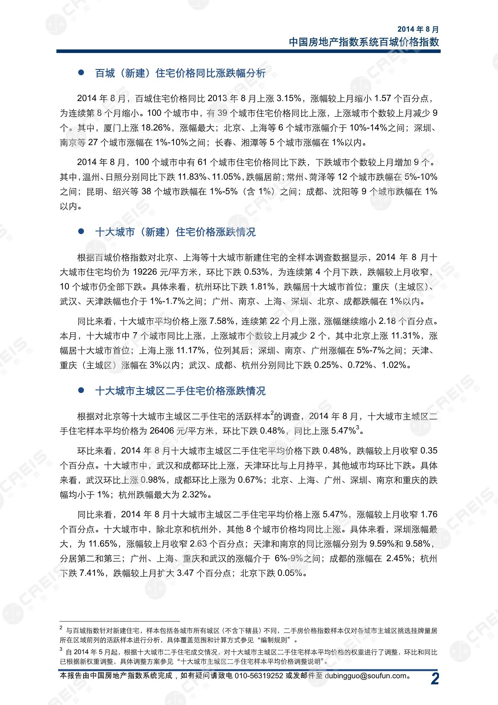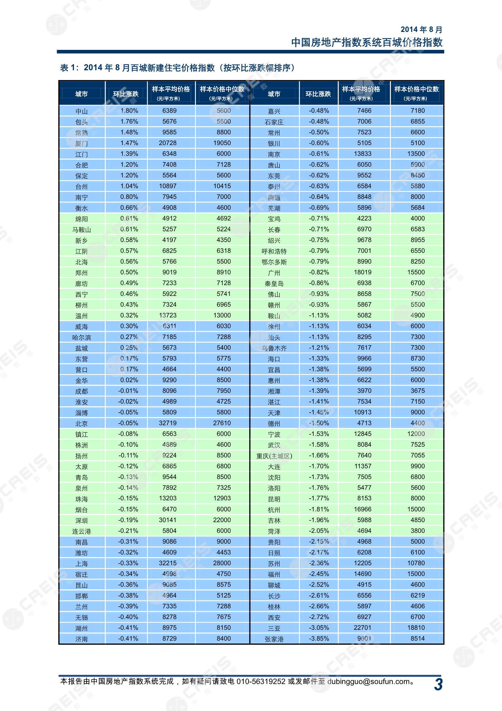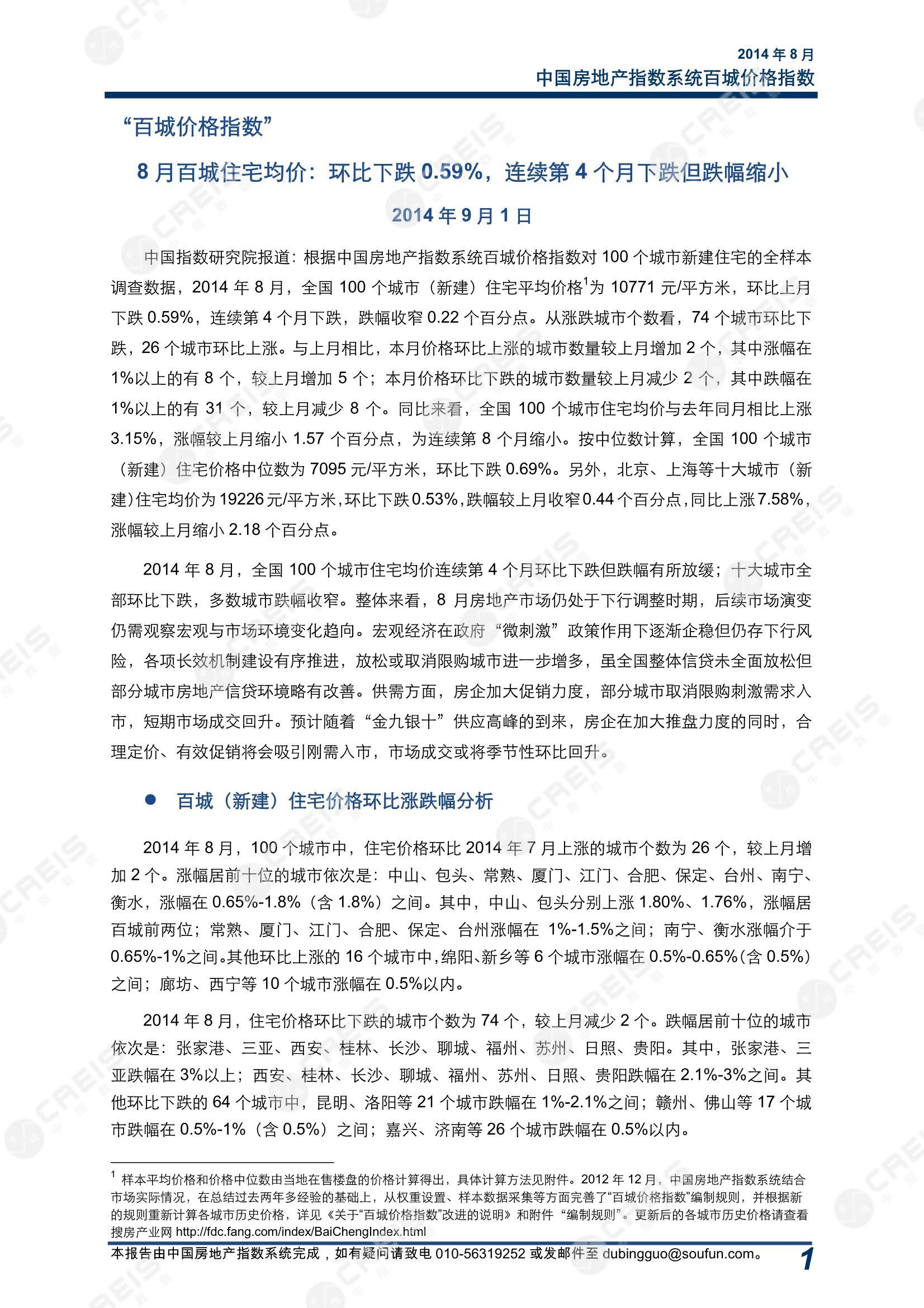 《中国房地产指数系统百城价格指数(2014年8月)》