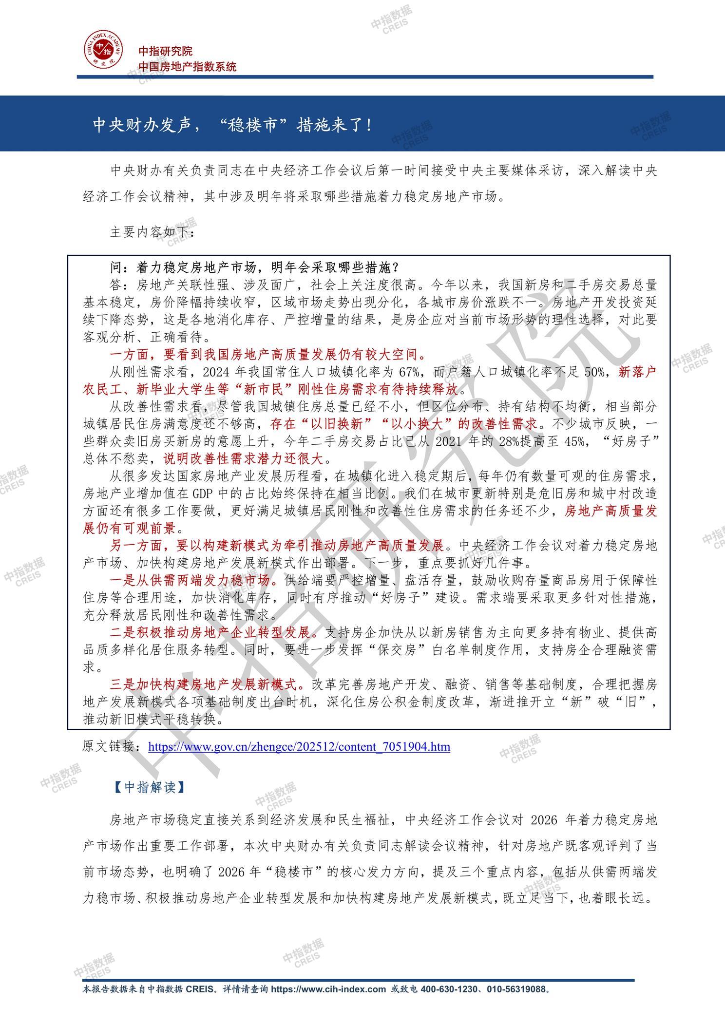 《中指丨中央财办发声,“稳楼市”措施来了!》