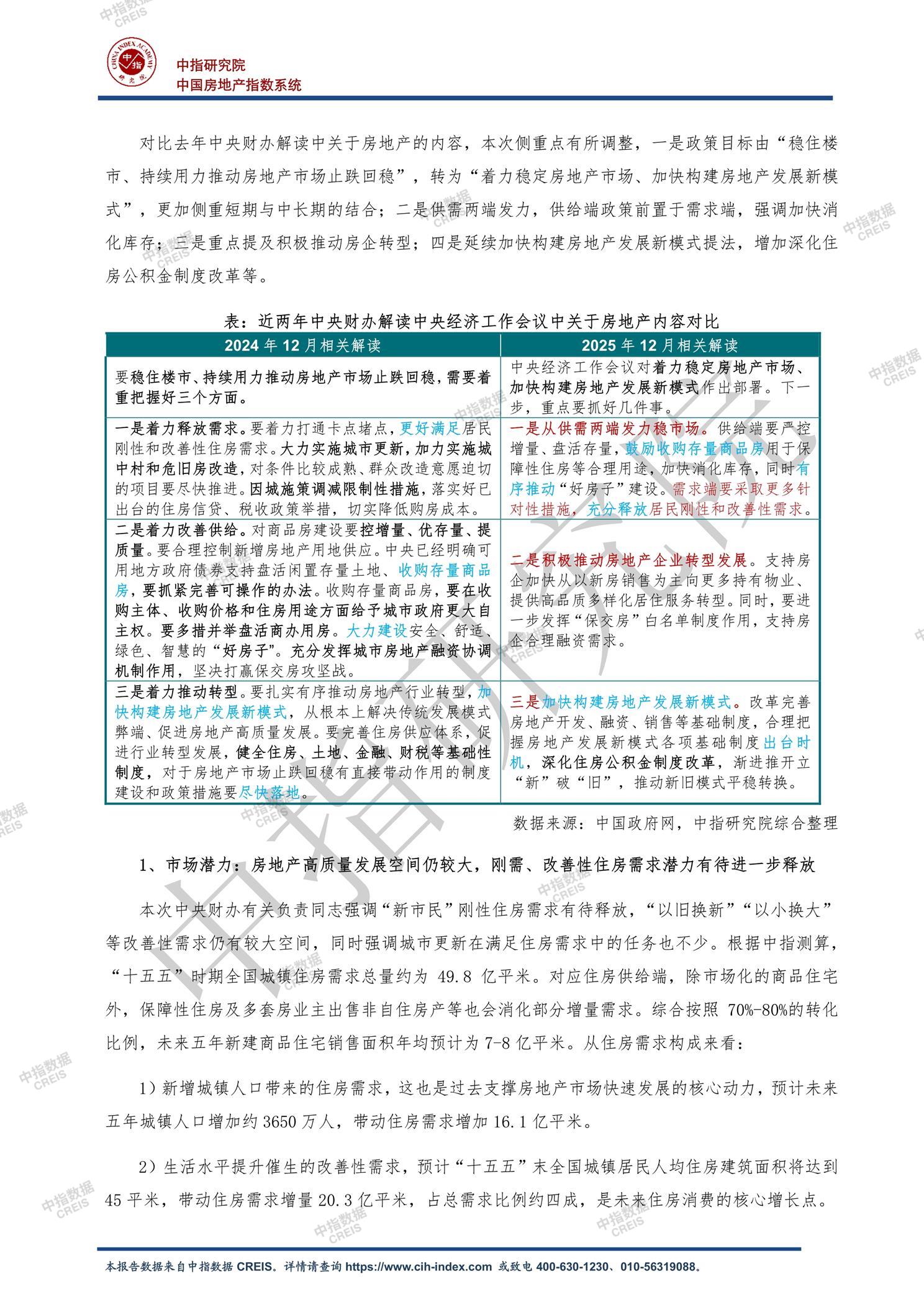 [摘要] 中央财办针对2026年“稳楼市”提出三方面措施:一是供需两端协同发力,供给端严控增量、盘活存量并推动“好房子”建设,需求端通过优化限购政策、降低购房成本等措施释放刚需和改善性需求;二是推动房企向“开发+持有+服务”模式转型,强化“保交房”白名单融资支持;三是加快构建房地产发展新模式,渐进改革开发、融资、销售等基础制度,深化公积金改革。报告指出我国城镇化率提升和住房改善需求仍存较大空间,预计“十五五”期间年均商品住宅需求7-8亿平米,政策将兼顾短期市场稳定与长期高质量发展。 【此内容为AI自动生成】