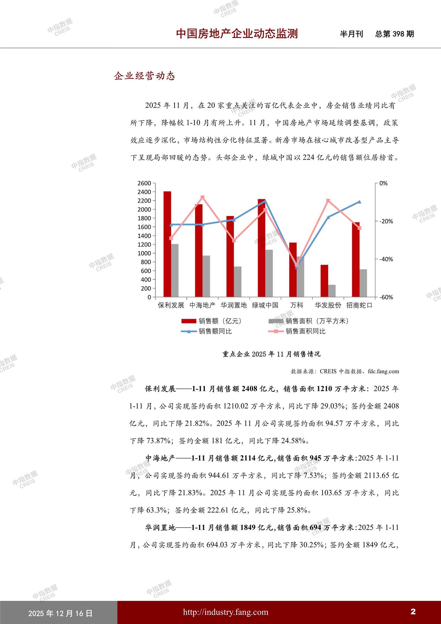 中国房地产企业动态监测第398期