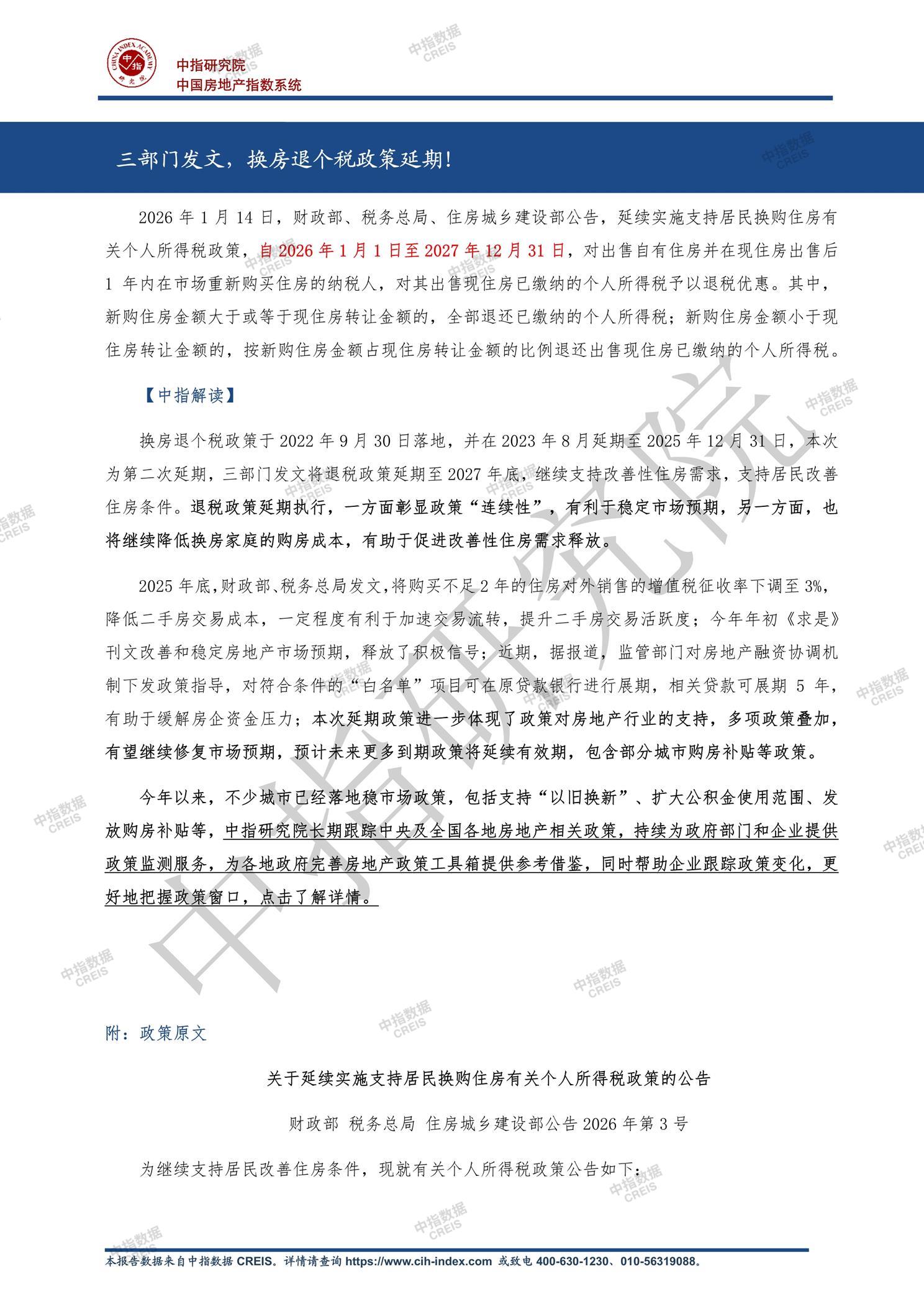 《中指丨三部门发文,换房退个税政策延期!》