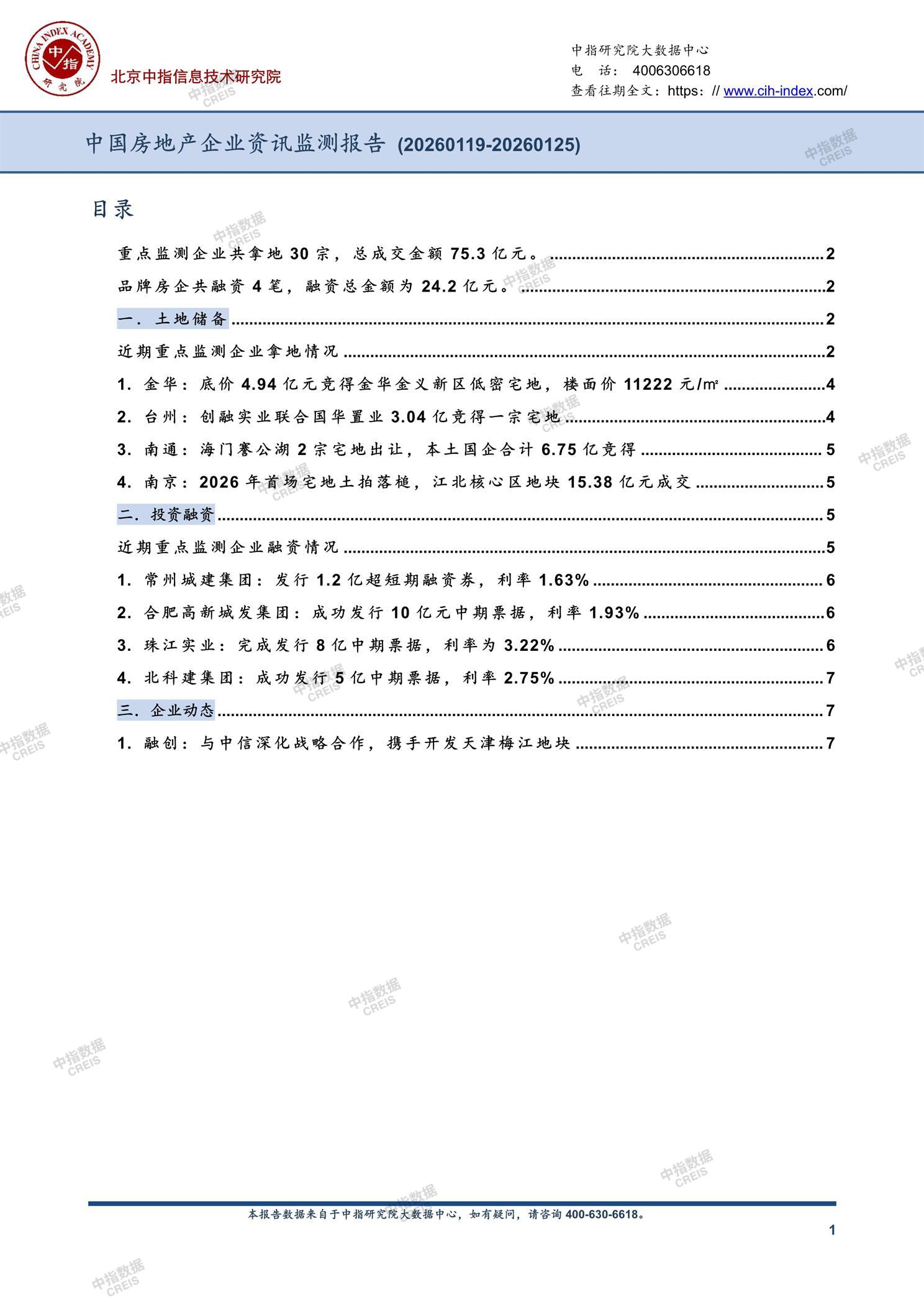 《中国房地产企业资讯监测报告(2026年1月19日-2026年1月25日)》