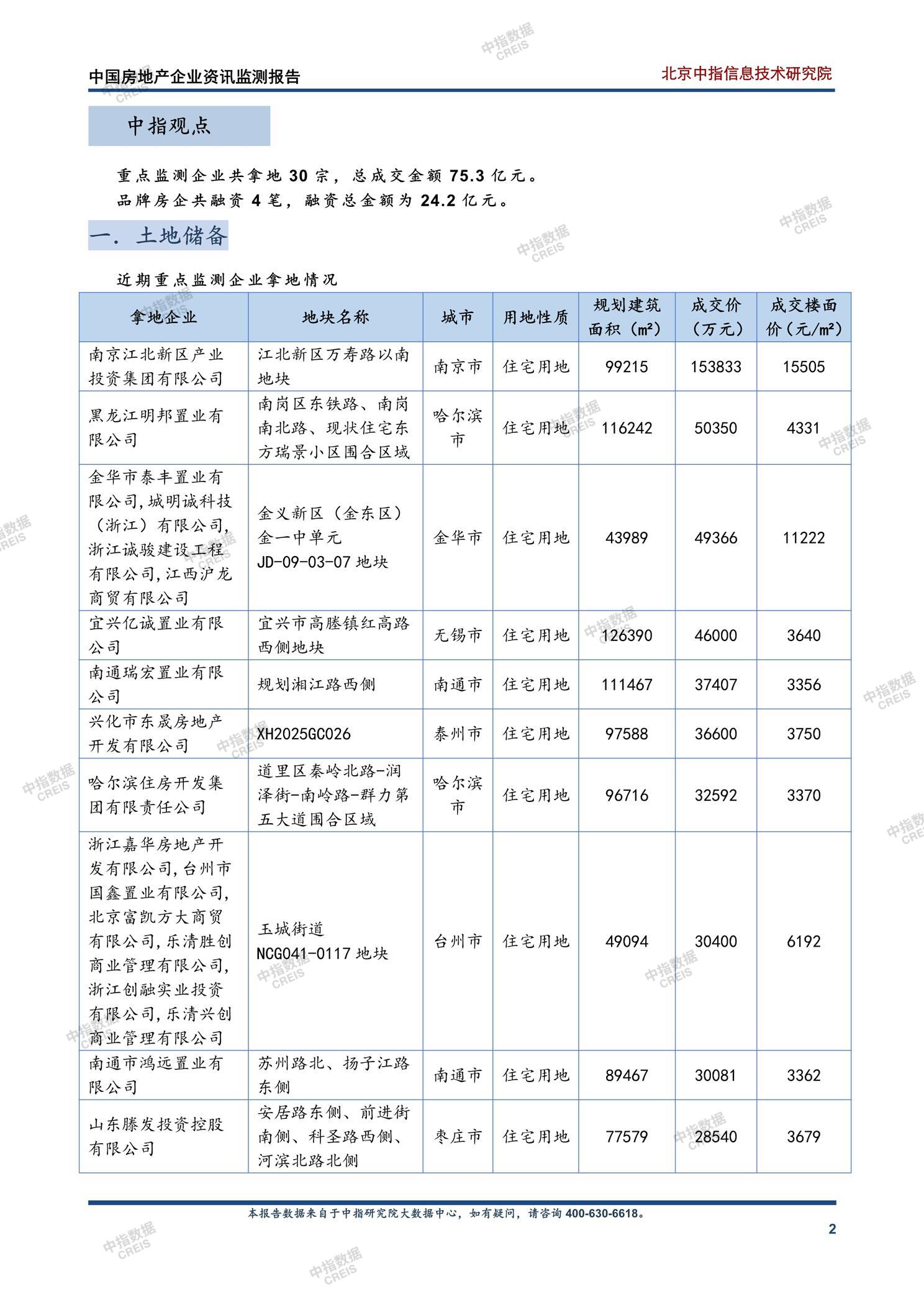 [摘要] 2026年1月19日至25日中国房地产市场监测显示,重点房企共成交30宗土地,总金额75.3亿元,其中南京江北新区宅地以15.38亿元成交价居首。同期品牌房企完成4笔融资合计24.2亿元,利率区间1.63%-3.22%,合肥高新城发10亿元中期票据利率最低(1.93%)。企业动态方面,融创与中信深化合作重启天津梅江地块开发。报告数据反映出土地市场以二线城市核心区域为主力,融资成本维持低位,国企与混合所有制企业为拿地主体。 【此内容为AI自动生成】