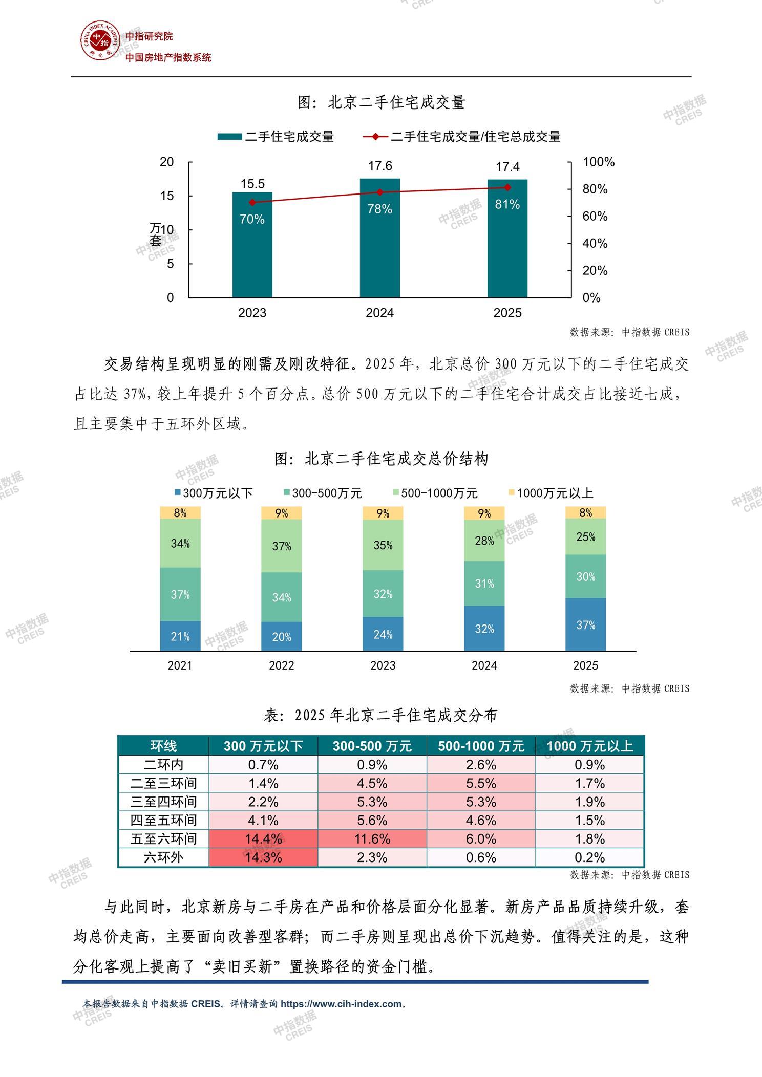 • [摘要] 二手房是住宅交易市场的绝对主力,北京市一二手住宅市场呈现明显分化态势,朝阳区、海淀区是1000万元以上二手房市场的集中区域。