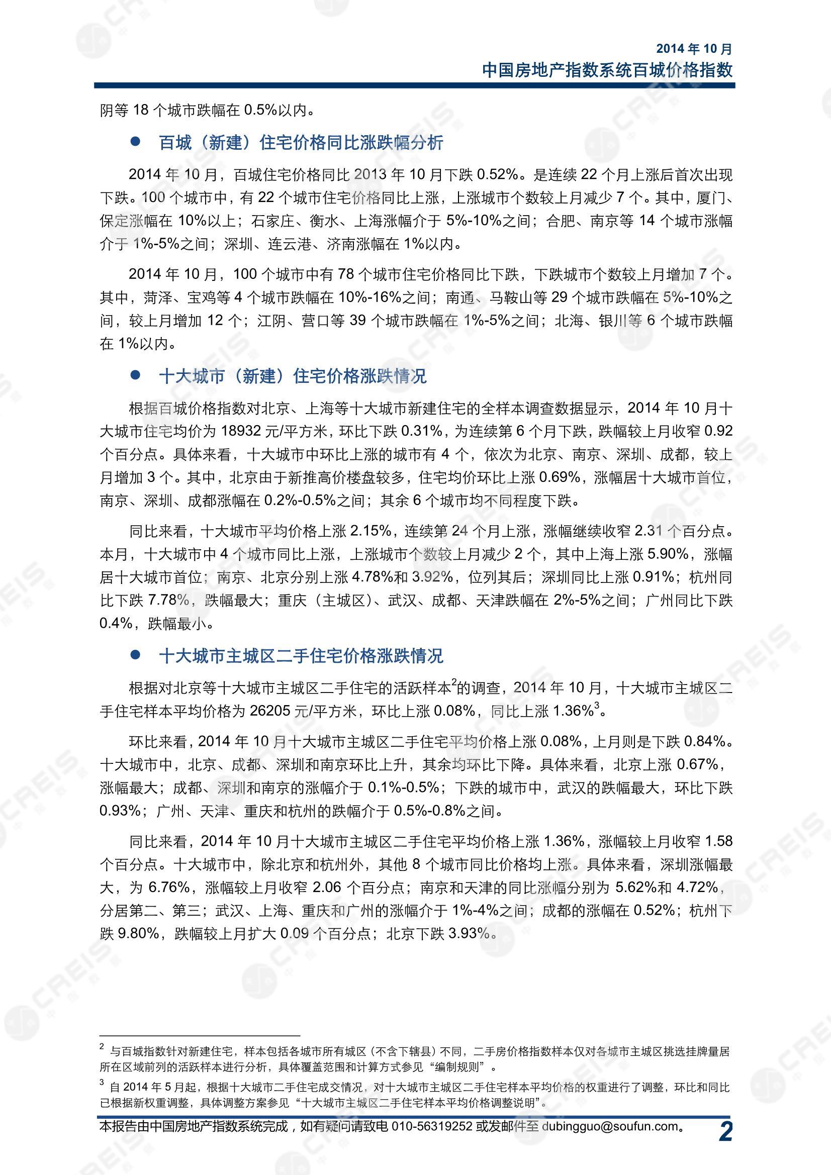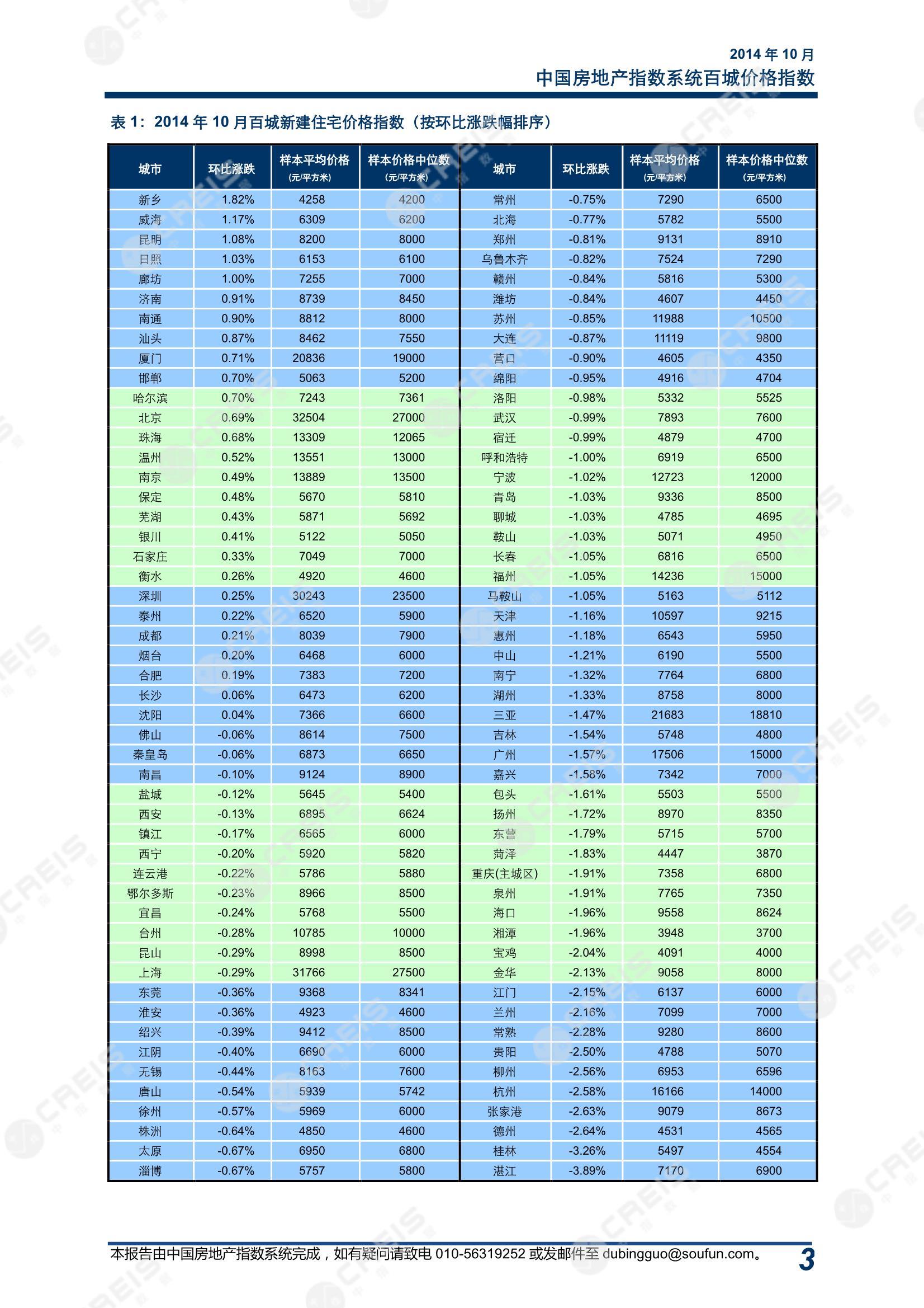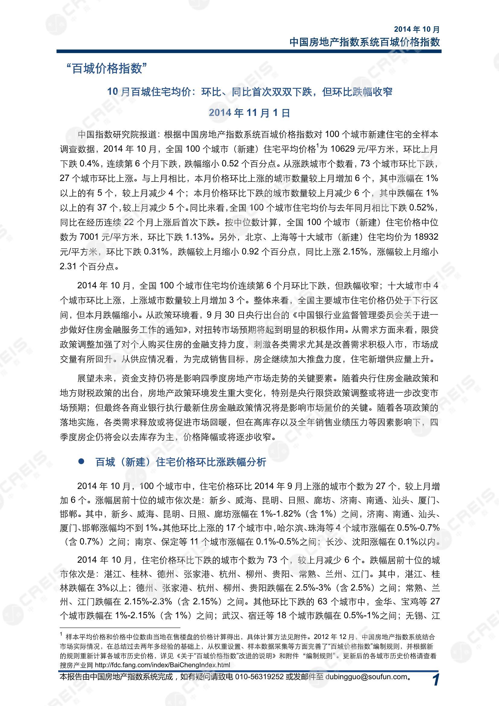 《中国房地产指数系统百城价格指数(2014年10月)》