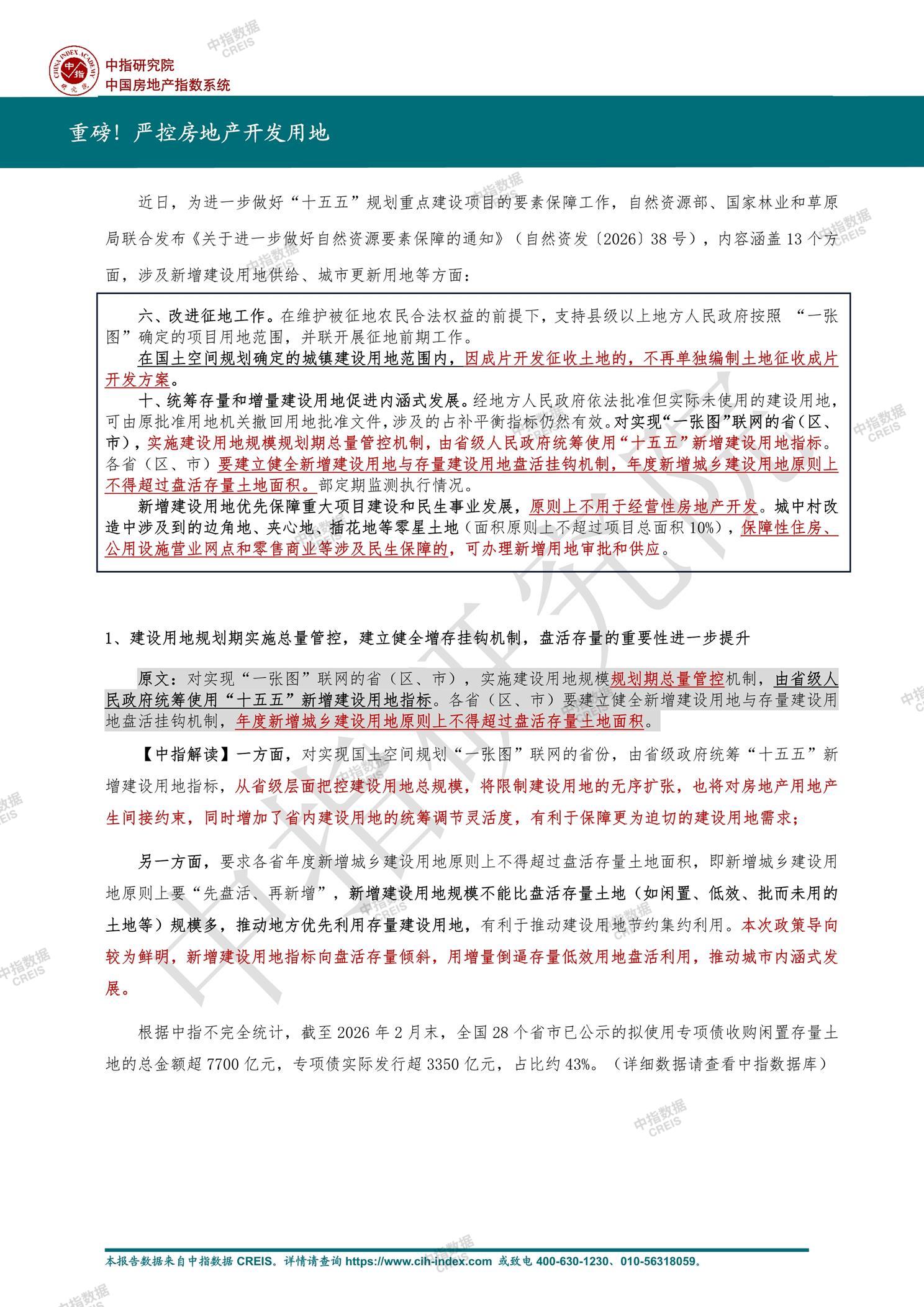 [摘要] 自然资源部与国家林业和草原局联合发布的《关于进一步做好自然资源要素保障的通知》提出多项土地管理新规。核心内容包括实施建设用地总量管控和增存挂钩机制,要求新增城乡建设用地规模原则上不得超过盘活存量土地面积,推动城市内涵式发展。新增建设用地优先保障重大项目和民生事业,原则上不用于经营性房地产开发,引导房地产行业转向存量盘活和城市更新。政策还简化了城镇开发边界内成片开发的征地流程,放松城中村改造中零星土地的用地审批限制,支持保障性住房等民生类项目。整体政策导向严控商品房新增用地,鼓励存量优化和资源向民生倾斜。 【此内容为AI自动生成】