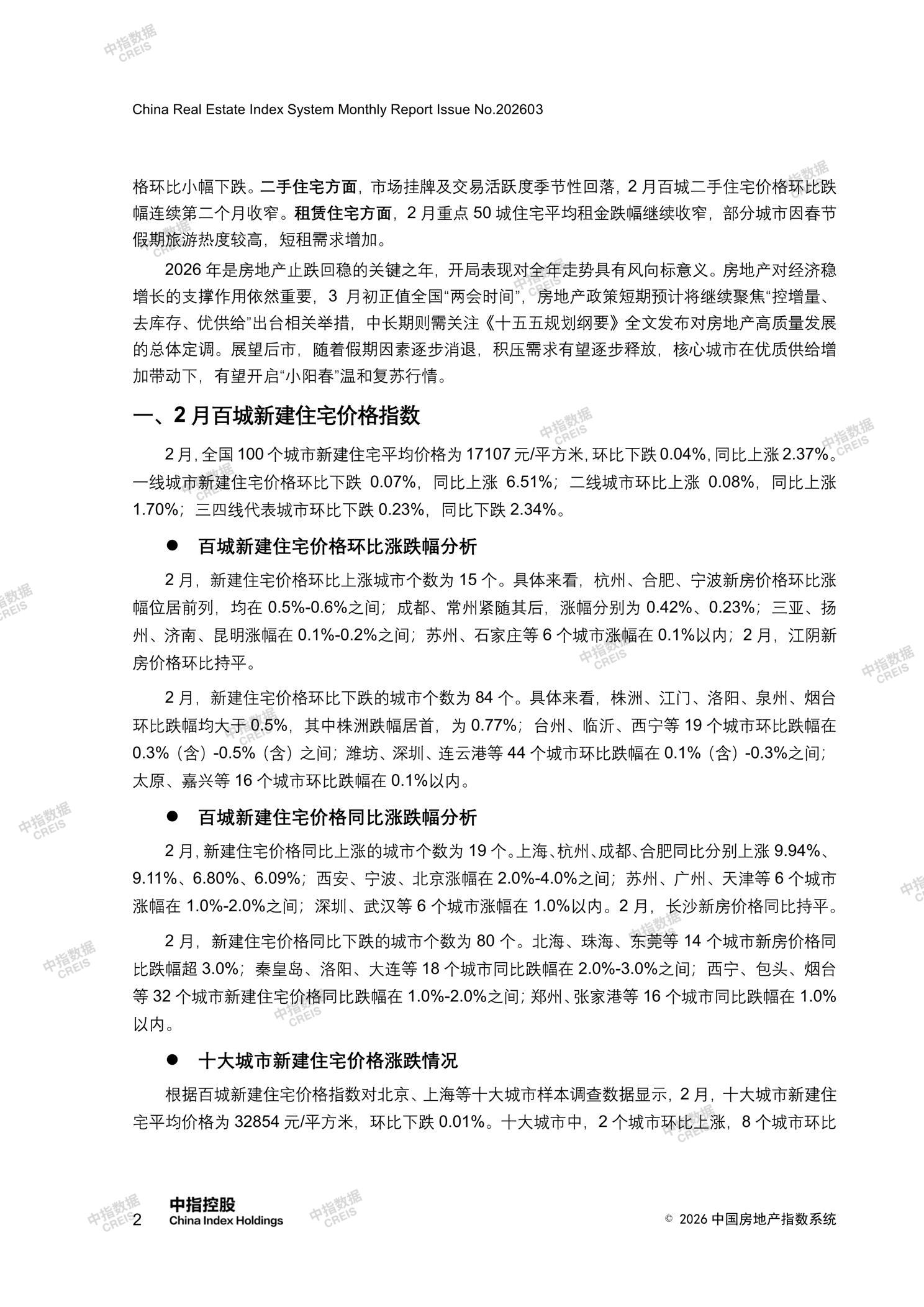 《中国房地产指数系统月报2026年第3期(总第335期)