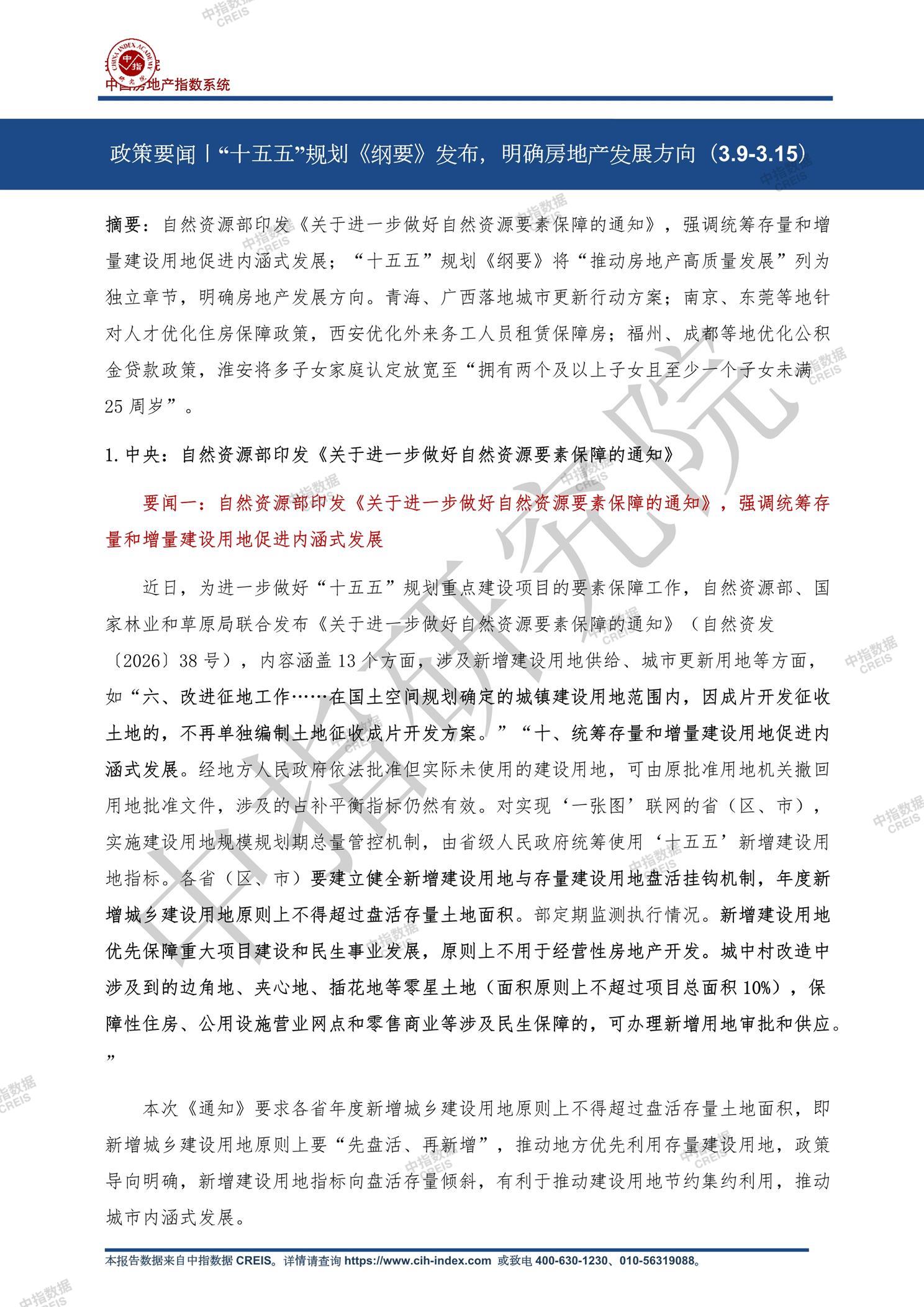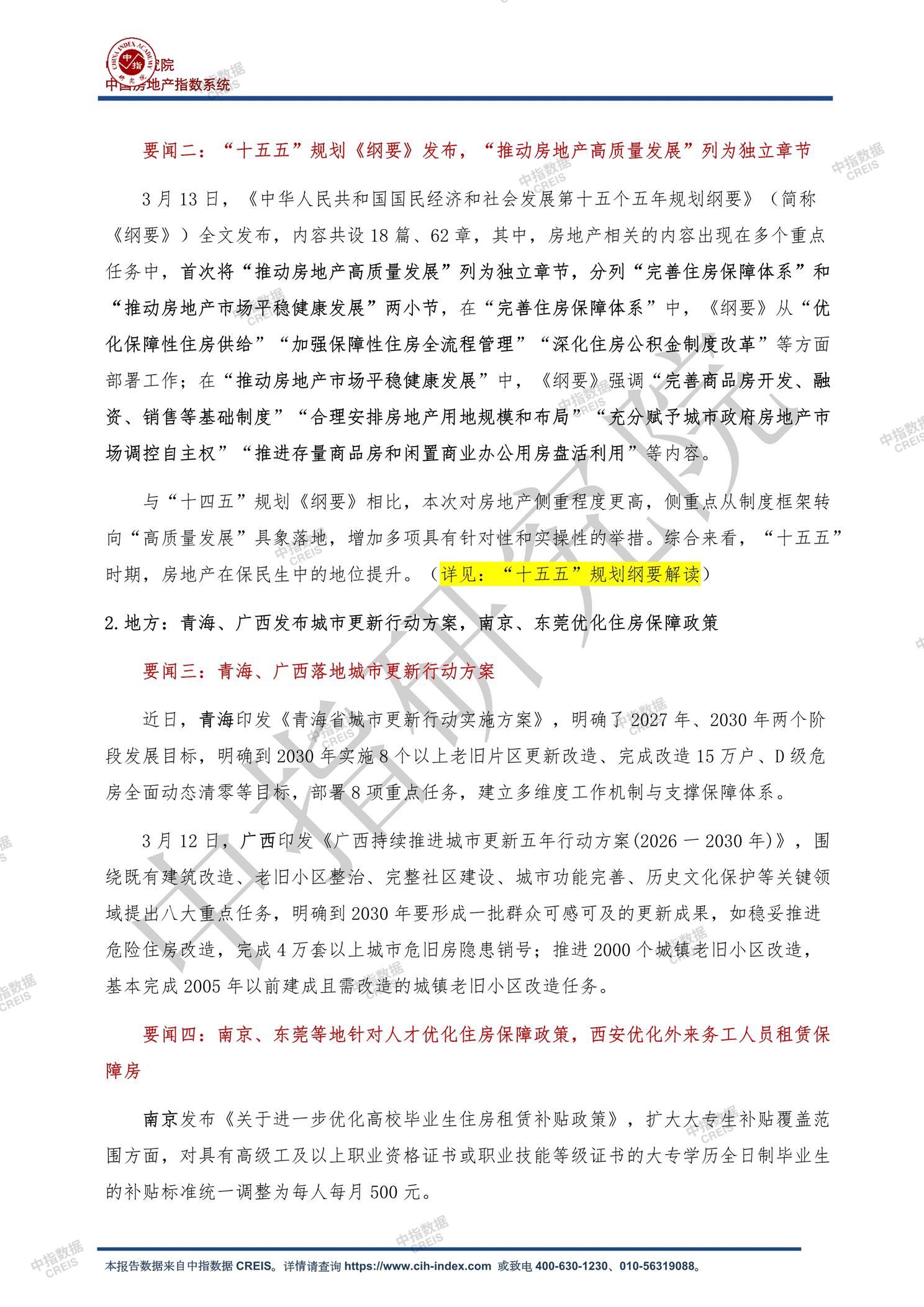 中指·政策要闻丨“十五五”规划《纲要》发布,明确房地产发展方向(3.9-3.15)