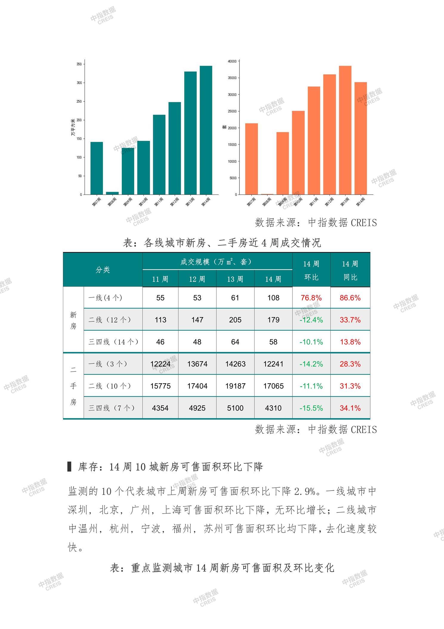 [摘要] 报告显示2026年第14周(3.29-4.04)房地产市场呈现新房成交环比增长4.6%、二手房环比下降12.8%的分化趋势,其中一线城市新房成交环比增幅达76.8%。土地市场方面,300城住宅用地成交出让金214亿元,上海以59亿元居首。政策层面央行延续宽松货币政策,多地优化公积金政策,如杭州、宁波提高贷款额度上限,上海金山区等推出人才购房补贴。企业融资以超短期融资券为主,中海宏洋完成1.04亿元项目收购。整体来看,市场在政策支持下呈现结构性活跃,但不同能级城市分化明显。 【此内容为AI自动生成】