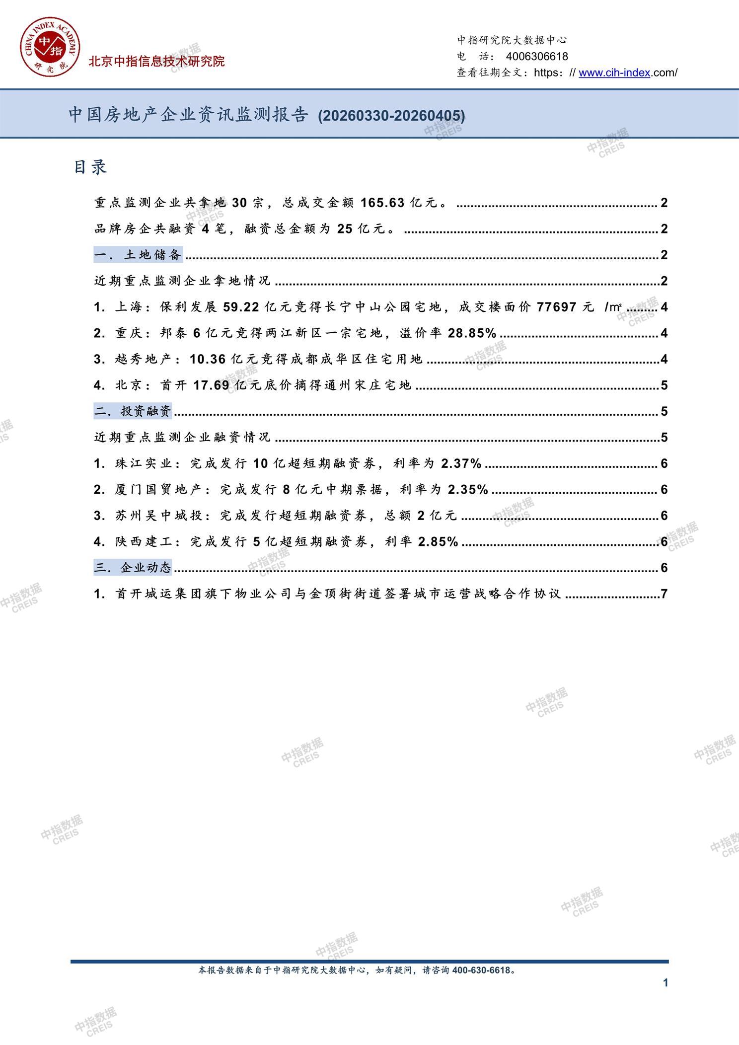 《中国房地产企业资讯监测报告(2026年3月30日-2026年4月5日)》