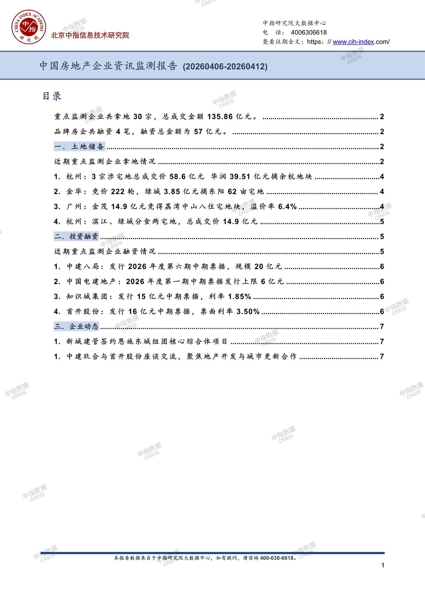 《中国房地产企业资讯监测报告(2026年4月6日-2026年4月12日)》