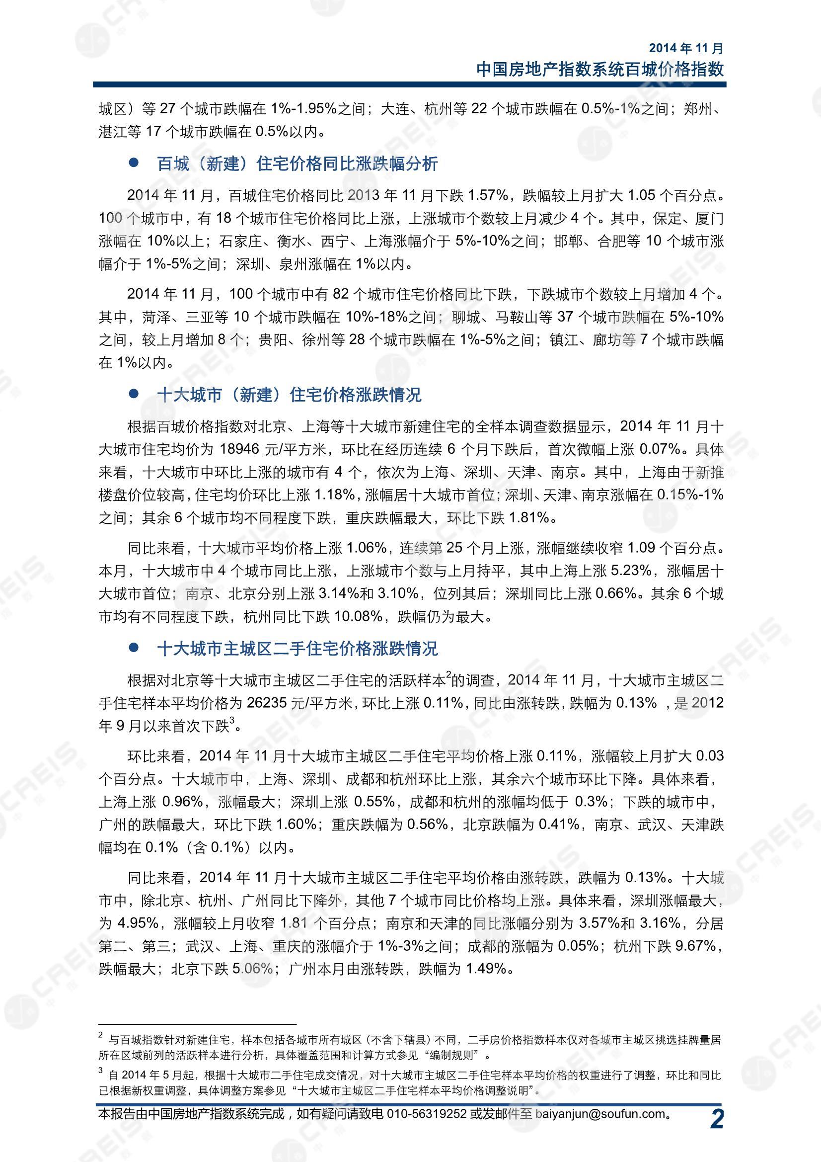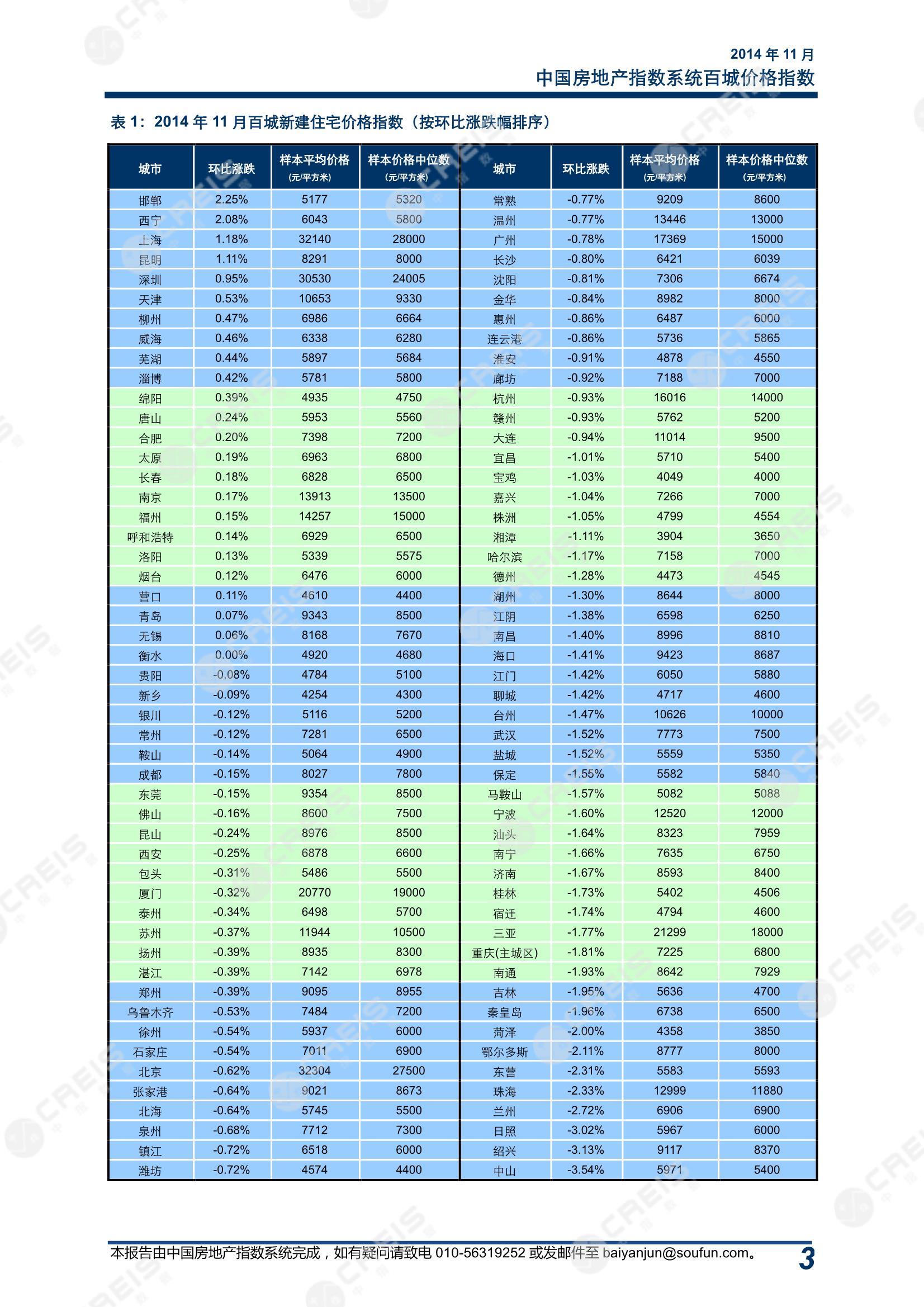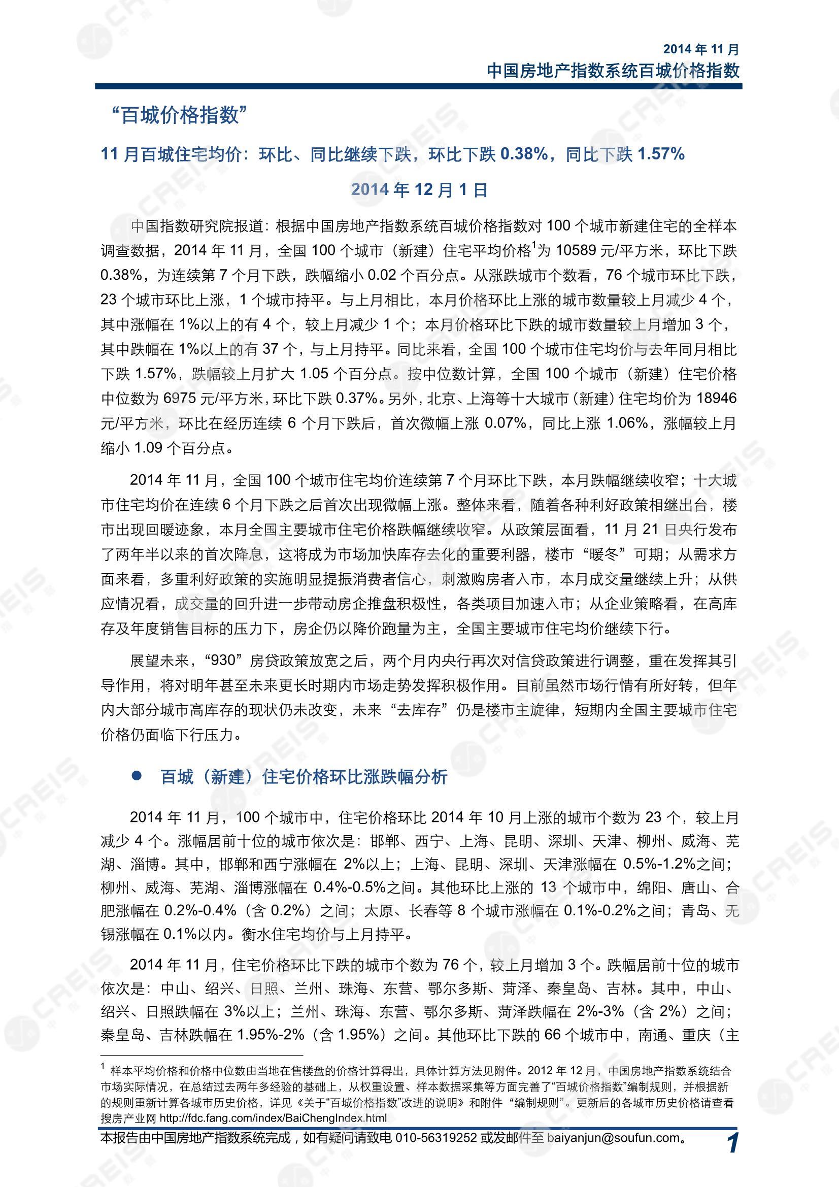 《中国房地产指数系统百城价格指数(2014年11月)》